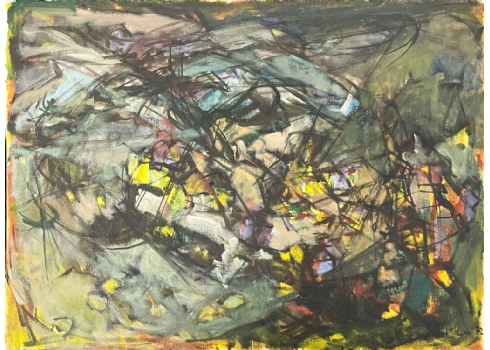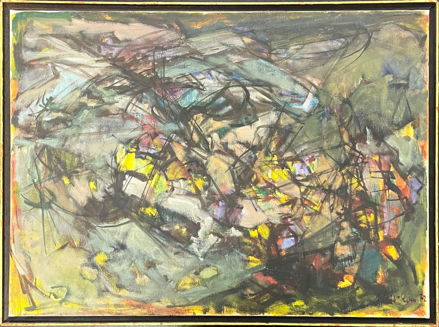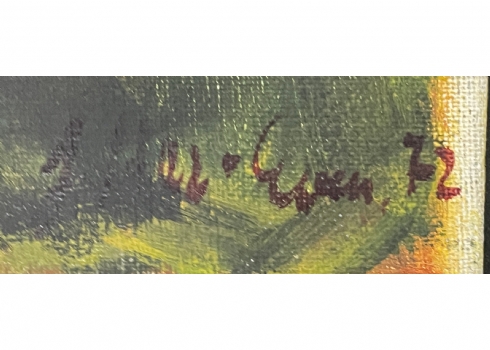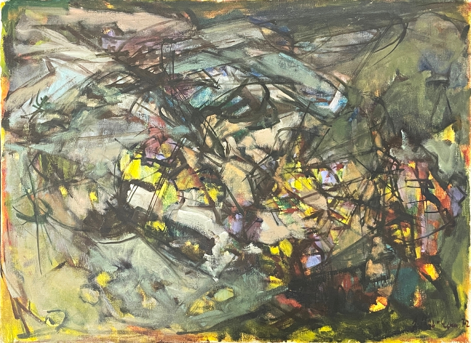 הר אבן, יהודית (Yehudit Har-Even) - 'תסבוכת עסק הביש' - ציור ישן, שמן על בד, חתום ומתוארך: 1972, מידות: 53.5X73 ס"מ.