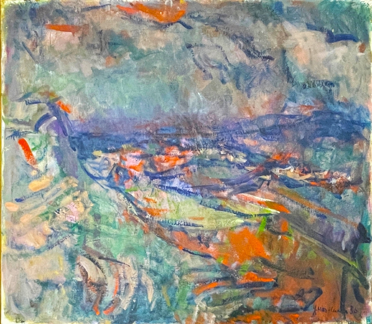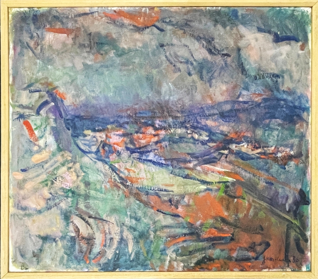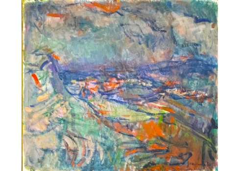 הר אבן, יהודית (Yehudit Har-Even) - 'מורדות הכרמל' - ציור ישן ויפה, שמן על בד, חתום ומתוארך: 1986, מידות: 73X81 ס"מ.