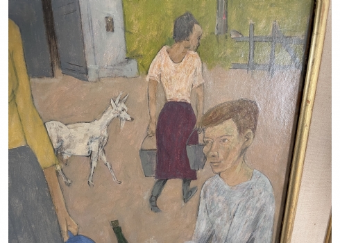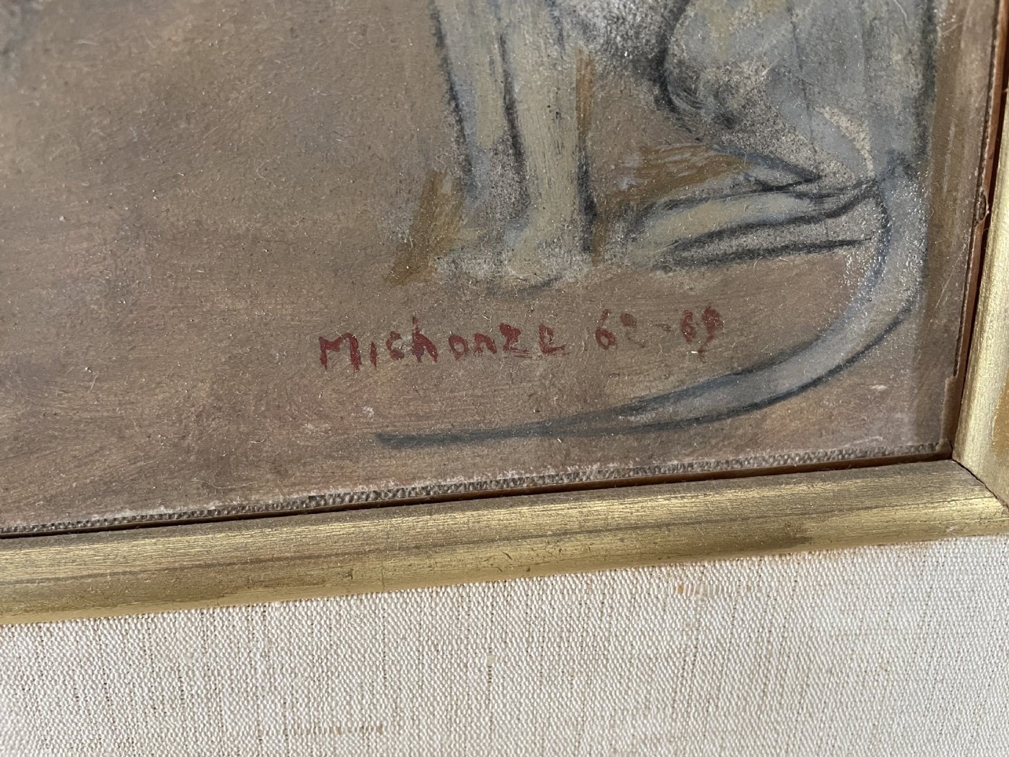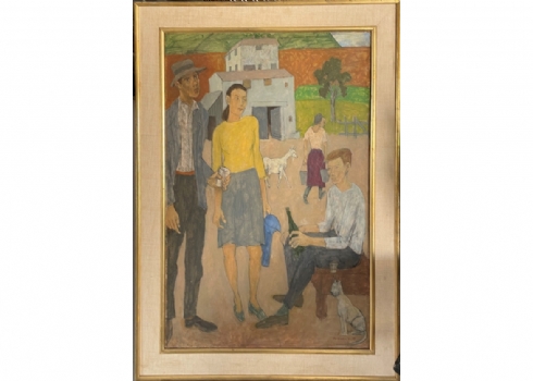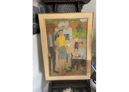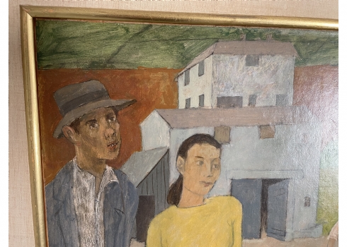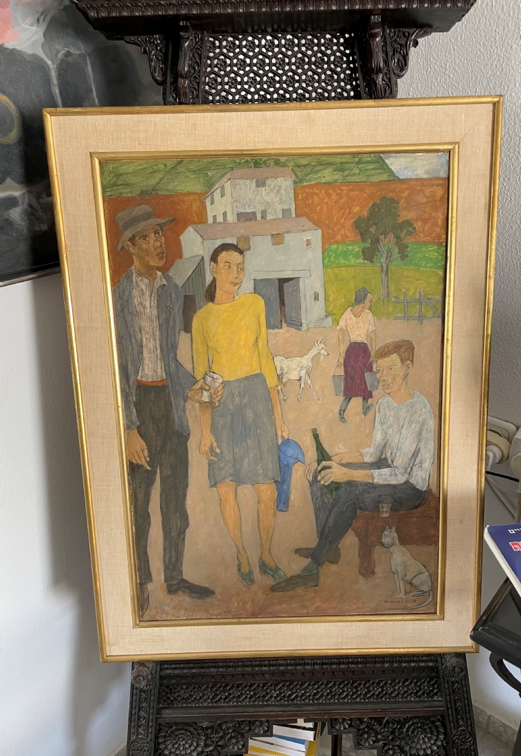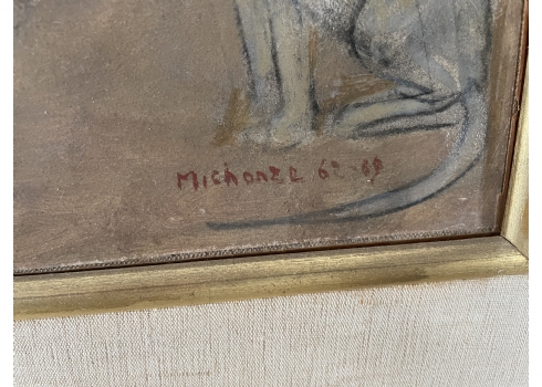 גרגואר מישונז (Gregoire Michonze) - 'דמויות', ציור גדול ואיכותי, שמן על נייר מוצמד לבד, חתום, שריטה קטנה (מצולמת) מידות: 73X47 ס"מ.