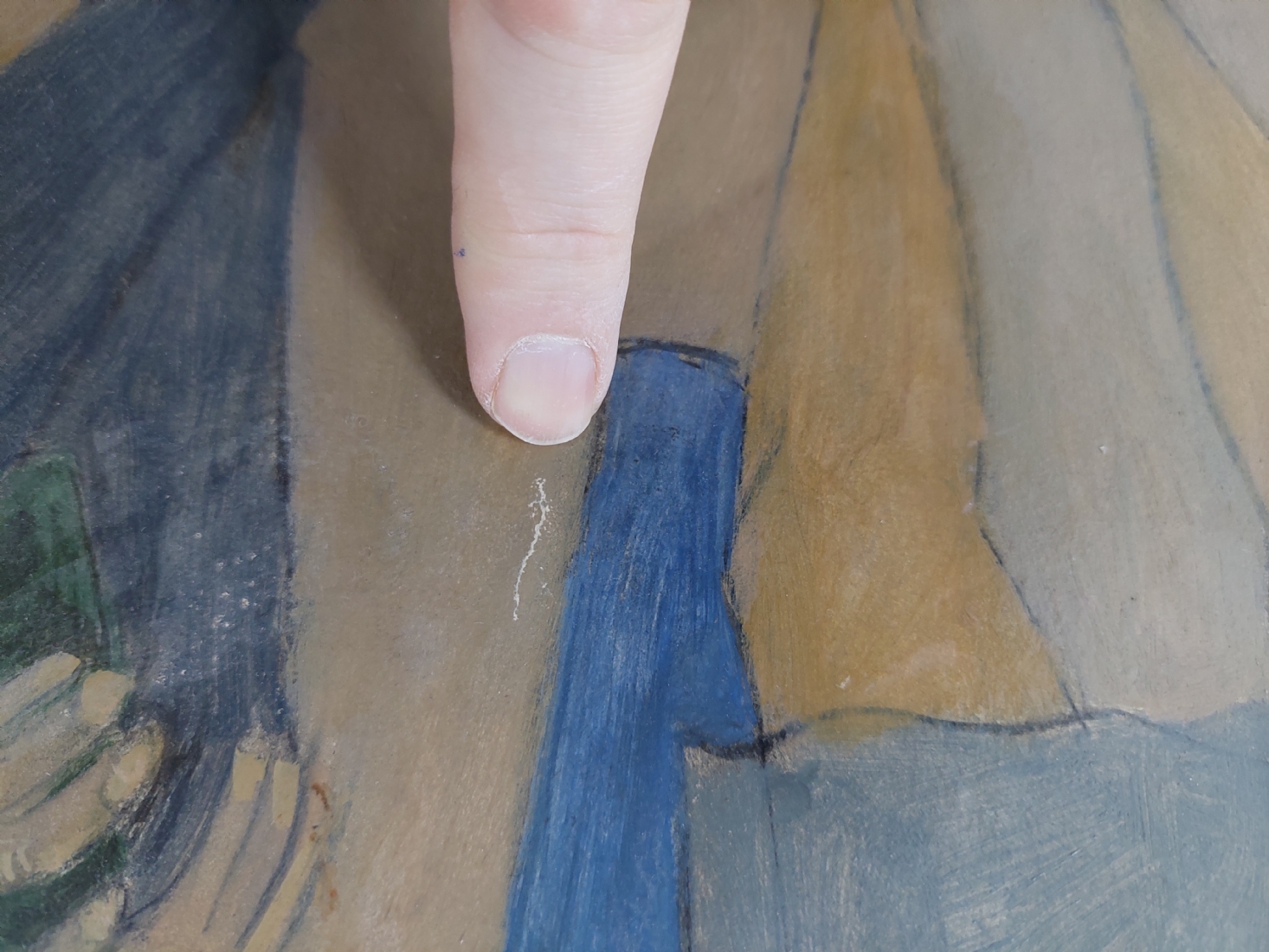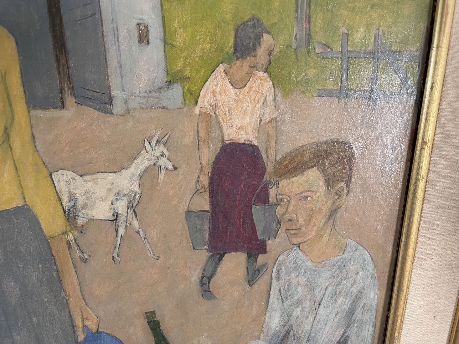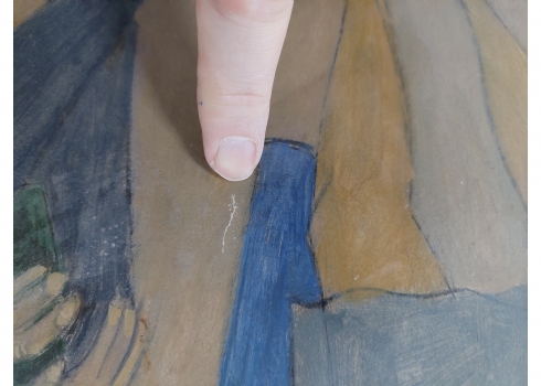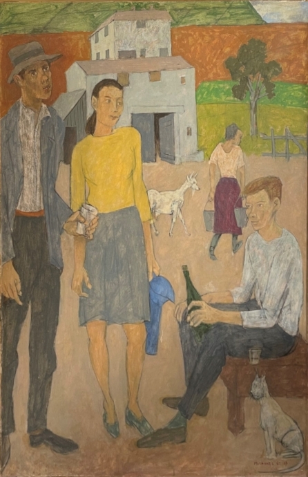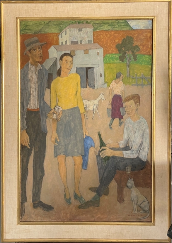 גרגואר מישונז (Gregoire Michonze) - 'דמויות', ציור גדול ואיכותי, שמן על נייר מוצמד לבד, חתום, שריטה קטנה (מצולמת) מידות: 73X47 ס"מ.
