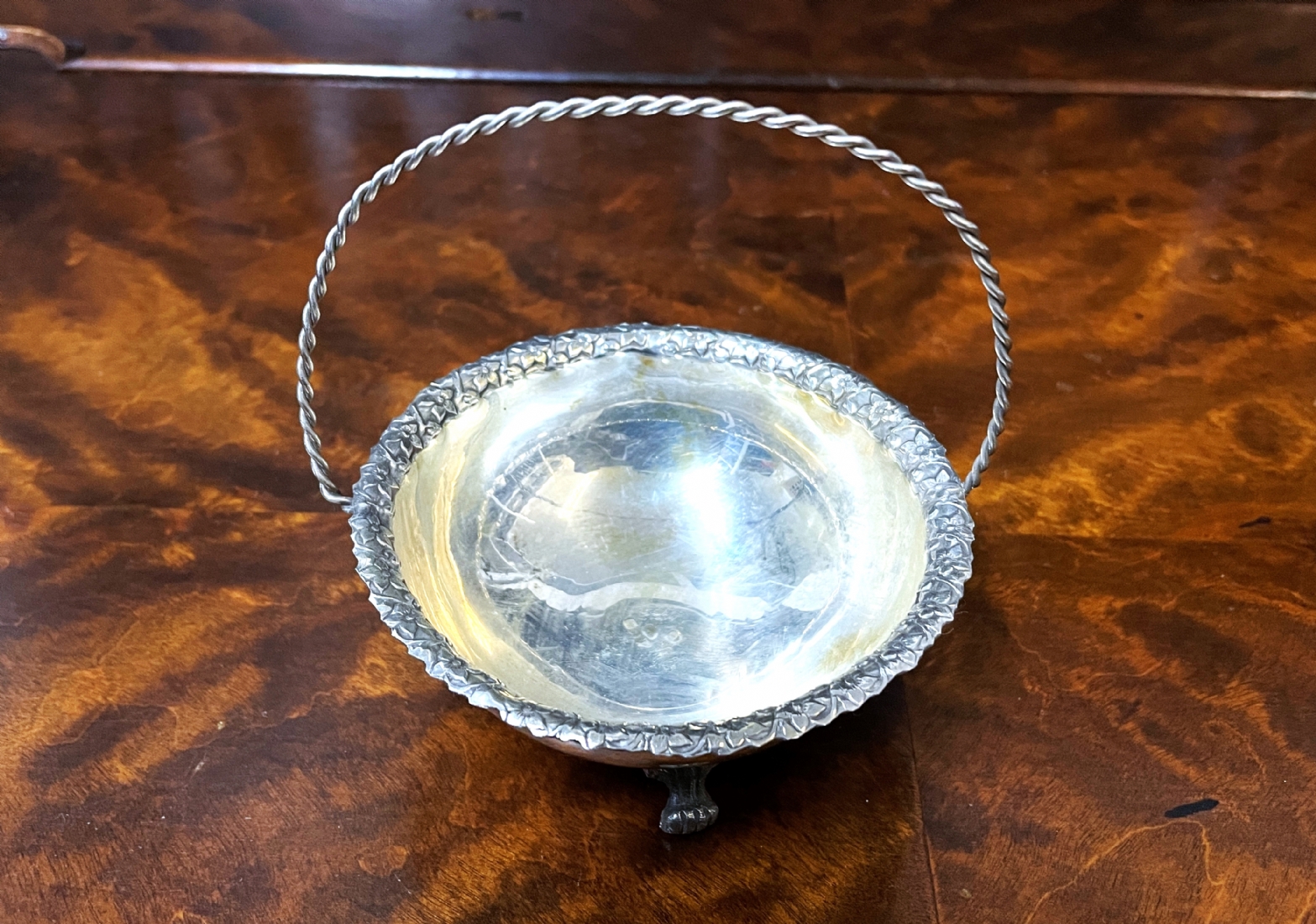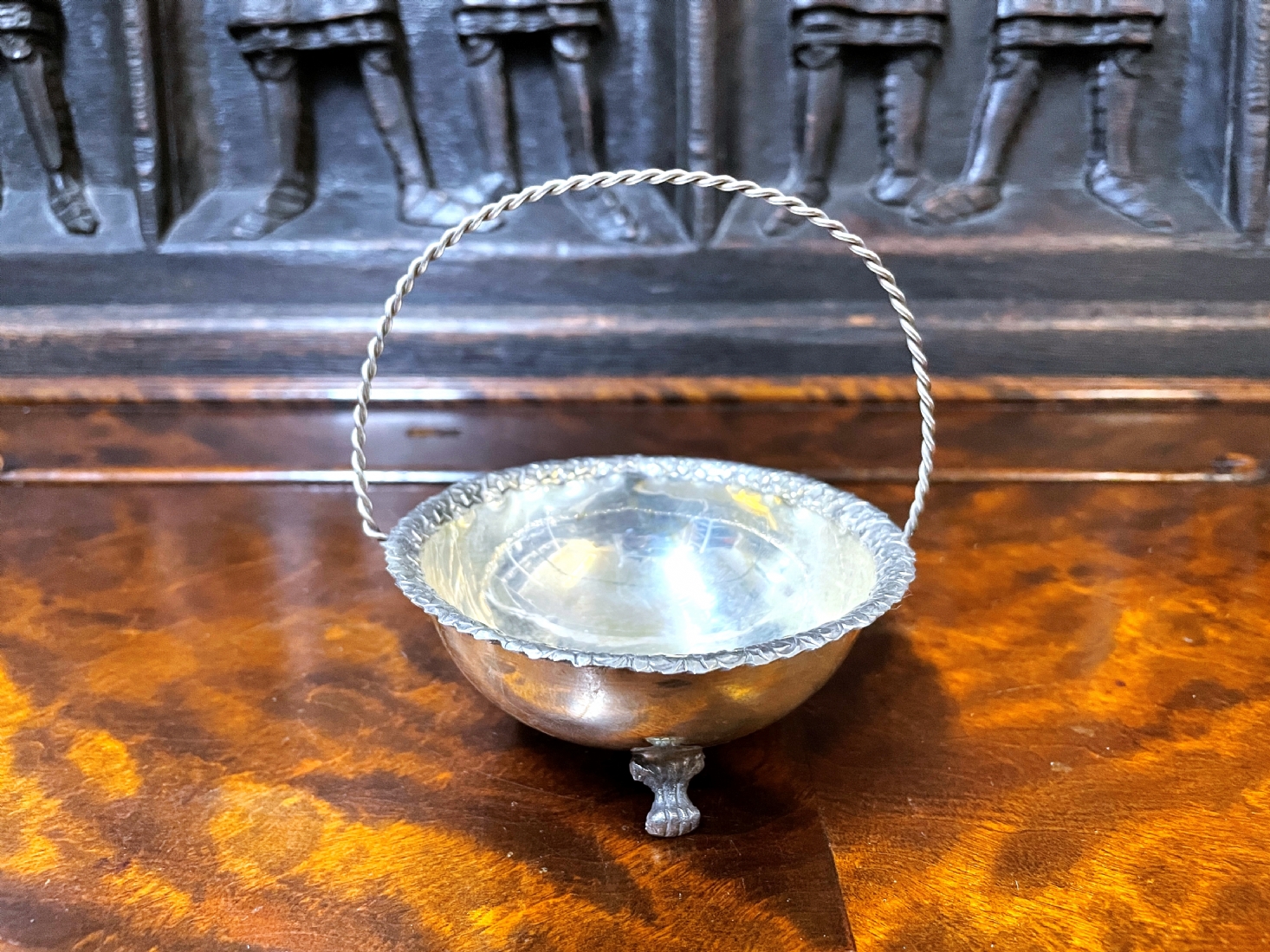 סלסלת כסף קטנה עשויה כסף '800', חתום, ידית בדגם חבל, אימרת פרחים, משקל: 43 גרם