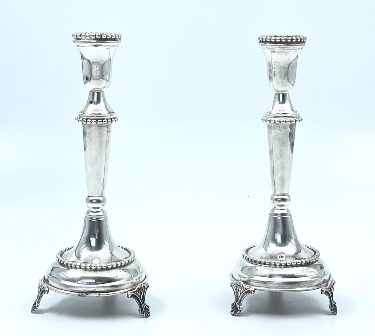 זוג פמוטים ישנים עשויים כסף 'סטרלינג' (925), חתומים, משקל כולל: 145 גרם, גובה: 17.5 ס"מ.