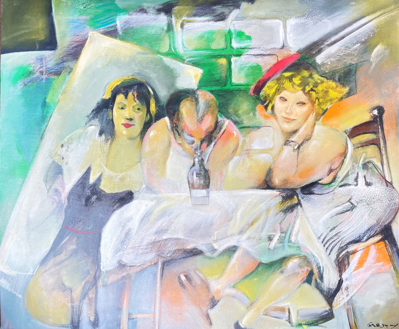 גרטי רובינשטיין רוטמן (Gerti Rubinstein) - 'גבר שיכור ושתי נשים מרוצות' - ציור