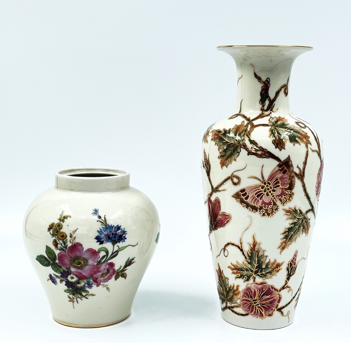 לוט של 2 כדי פורצלן ישנים, הגבוה הונגרי מתוצרת: 'ז'ולנאי' (Zsolnay), מעוטר ציורי יד באמייל וחתום בגובה: 27 ס"מ, והשני (שחסר לו המכסה) מתוצרת: 'רוזנטל' (Rosenthal) מעוטר וחתום בגובה: 16 ס"מ.