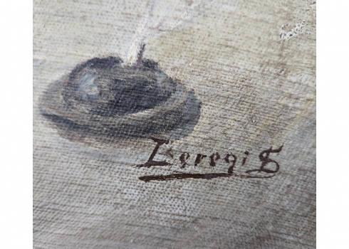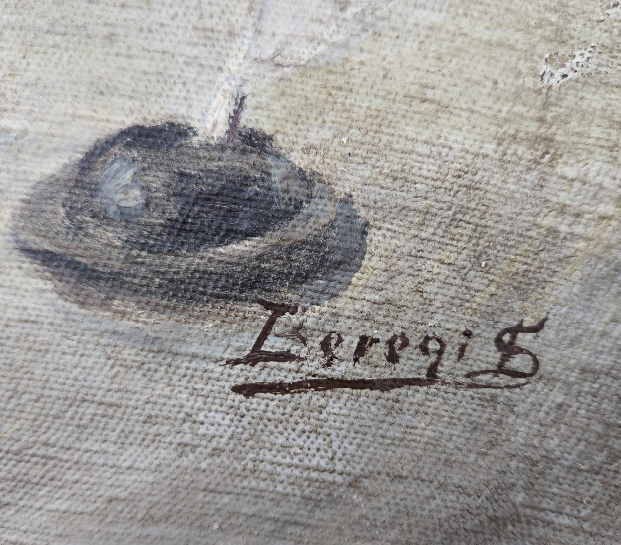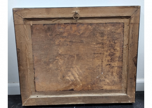 'סופר סת"ם' - ציור ישן, שמן על בד מוצמד ללוח, חתום, אמן לא מזוהה, קילופי צבע קטנים מאד (מצולם), מידות: 40X50 ס"מ, מידות המסגרת: 51X62 ס"מ.