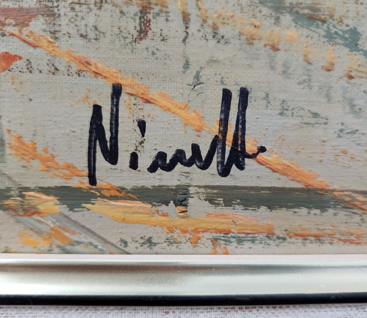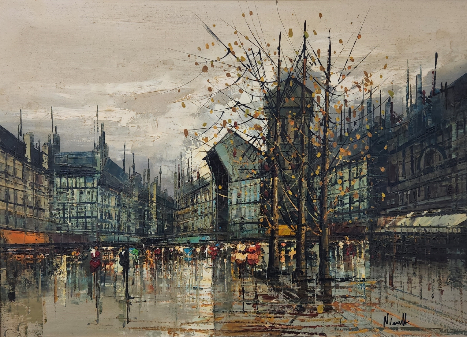 'נוף פריסאי בחורף' - ציור ישן, שנות השישים של המאה העשרים, שמן על בד, חתום