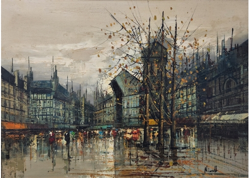 'נוף פריסאי בחורף' - ציור ישן, שנות השישים של המאה העשרים, שמן על בד, חתום, מידות: 50X70 ס"מ, מידות המסגרת: 84X65 ס"מ.