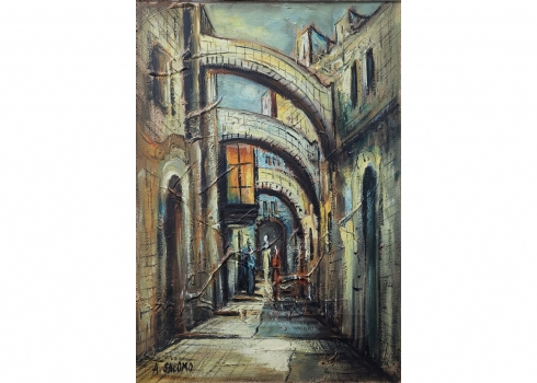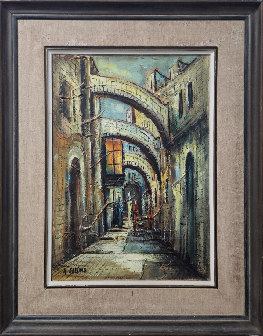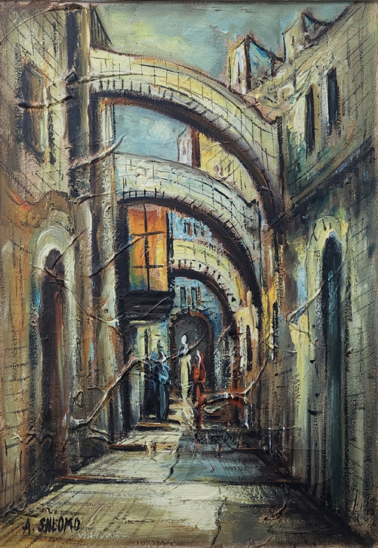 'קשתות אבן בירושלים העתיקה' - ציור ישן, שמן על בד, חתום: 'A. Shlomo'