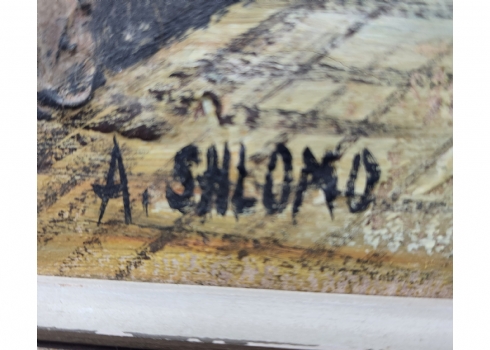 'קשתות אבן בירושלים העתיקה' - ציור ישן, שמן על בד, חתום: 'A. Shlomo', מידות הציור: 50X35 ס"מ, מידות המסגרת: 70X55 ס"מ.
