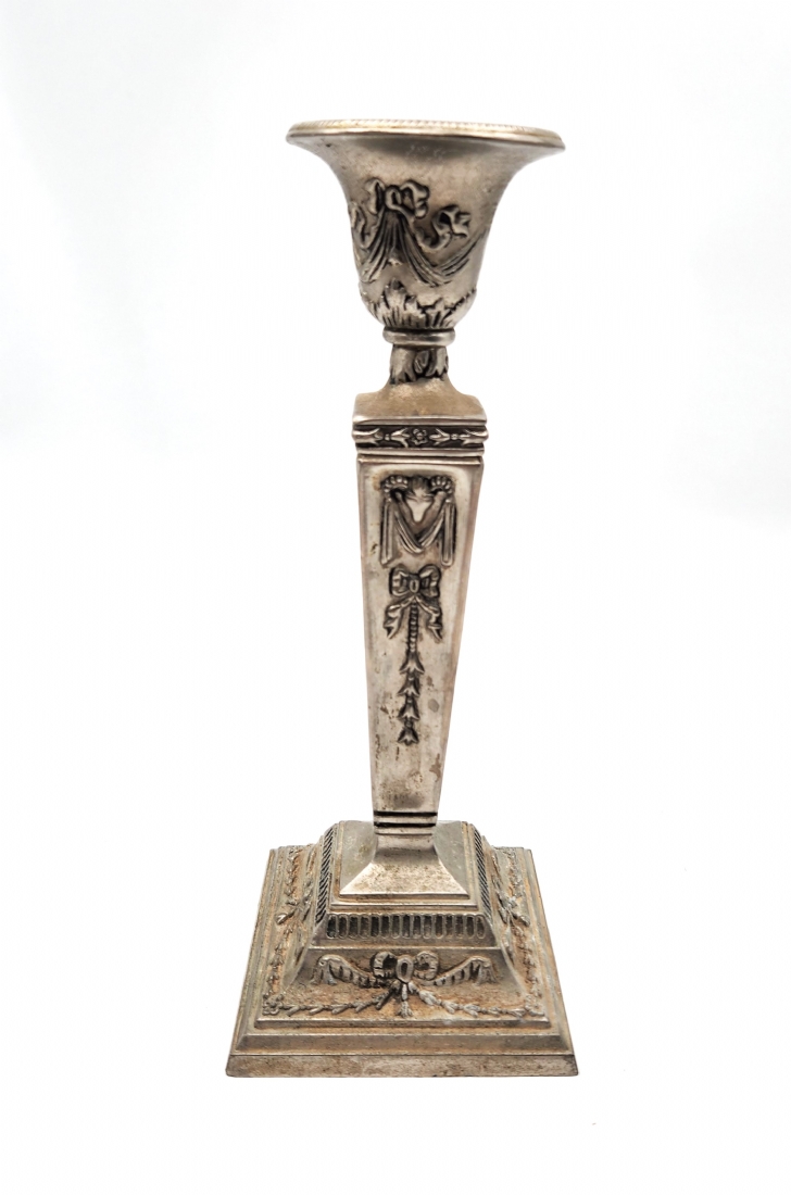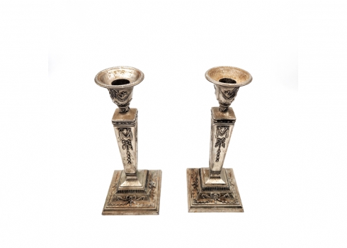 זוג פמוטים ישנים בסגנון ניאו קלאסי עשויים מתכת מצופים כסף