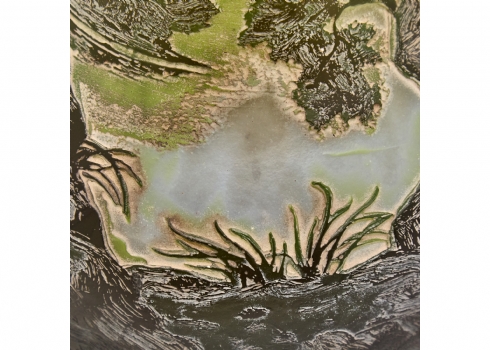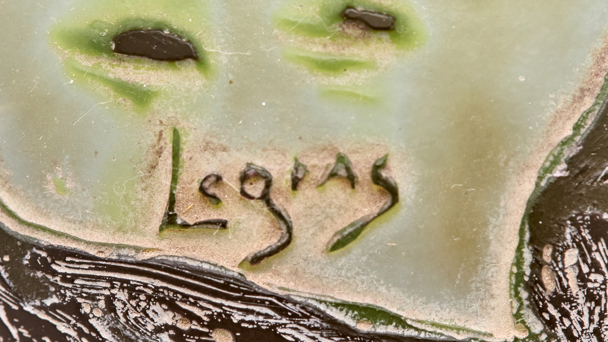 מעוטר וחתום בקמיאו על רקע זכוכית בגווני ירוק