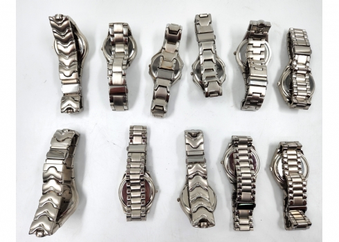 לוט סוחרים של 11 שעוני יד עשויים מתכת, מחנות שנסגרה (לא נענדו מעולם), במצב חדש