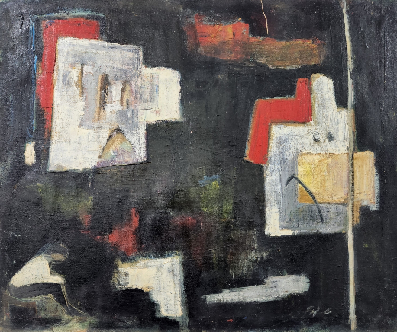 שלמה אלירז - 'בתים לבנים בצפת' - ציור ישן, שמן על בד, חתום, מידות: 61X73 ס"מ.