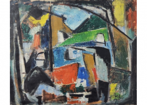 שלמה אלירז - 'טבריה' - ציור ישן, שמן על בד, חתום ומתוארך: 1963