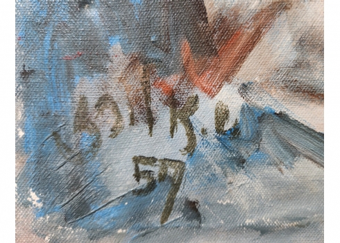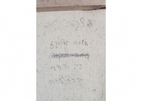 שלמה אלירז - 'בית ורוד בצפת' - ציור ישן, שמן על בד, חתום ומתוארך: 1957, זקוק למתיחה מחדש, מידות: 46X55 ס"מ