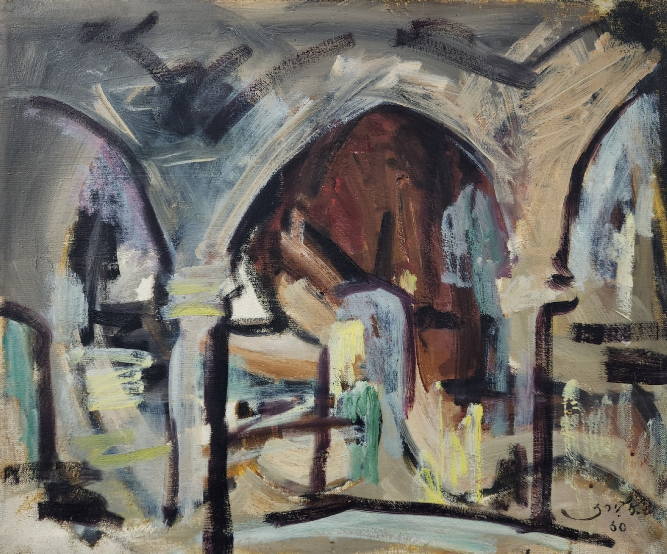 שלמה אלירז - 'קשתות אבן בירושלים' - ציור ישן, שמן על בד, חתום ומתוארך: 1960, מידות: 50X61 ס"מ