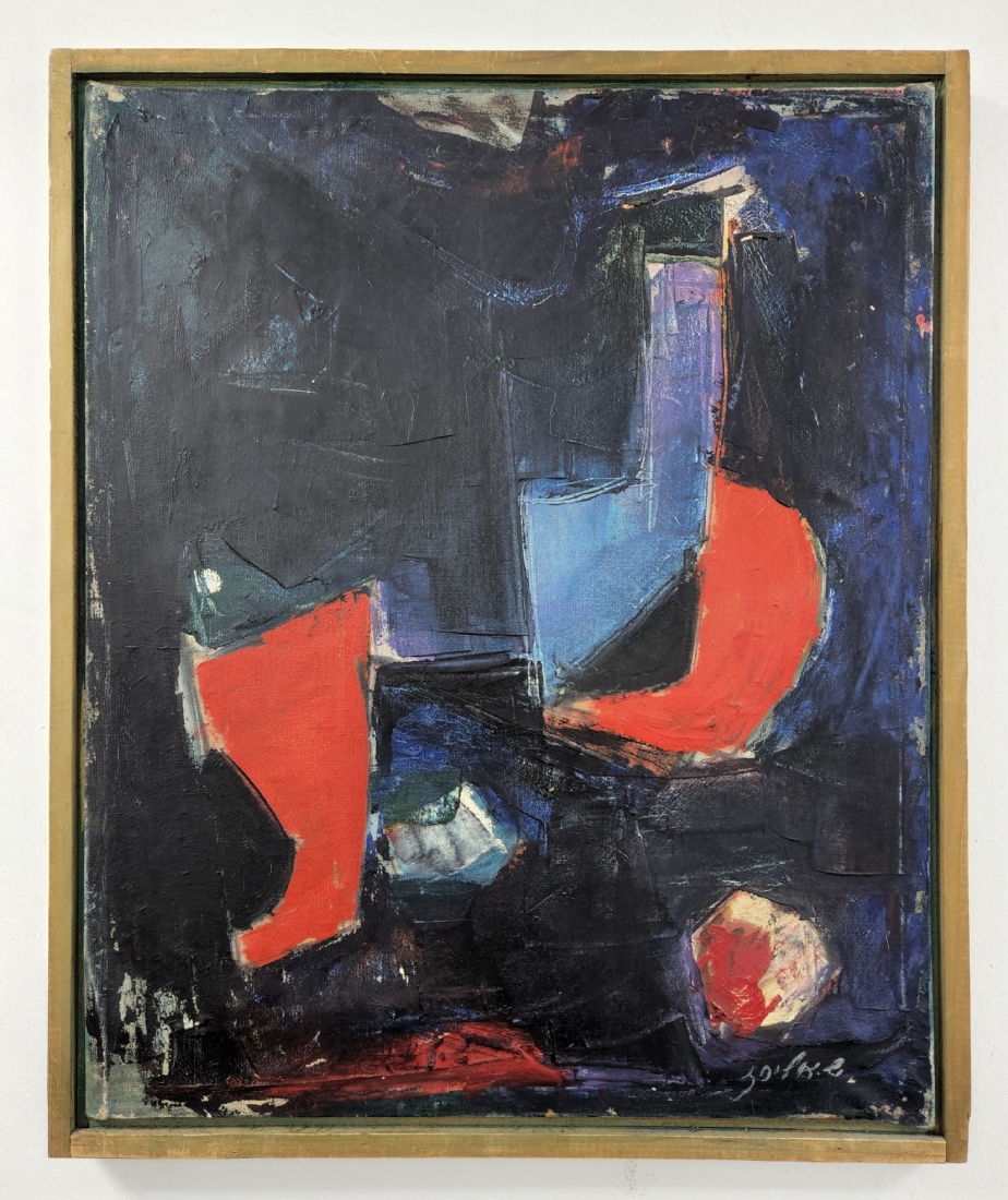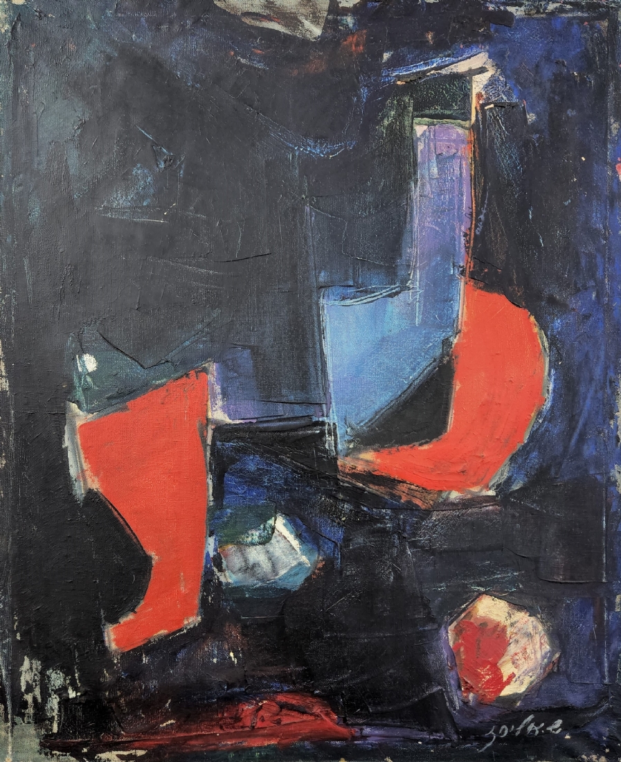 שלמה אלירז - 'שמש אדומה במרחב כחול' - ציור ישן, שמן על בד, חתום ומתוארך: 1962
