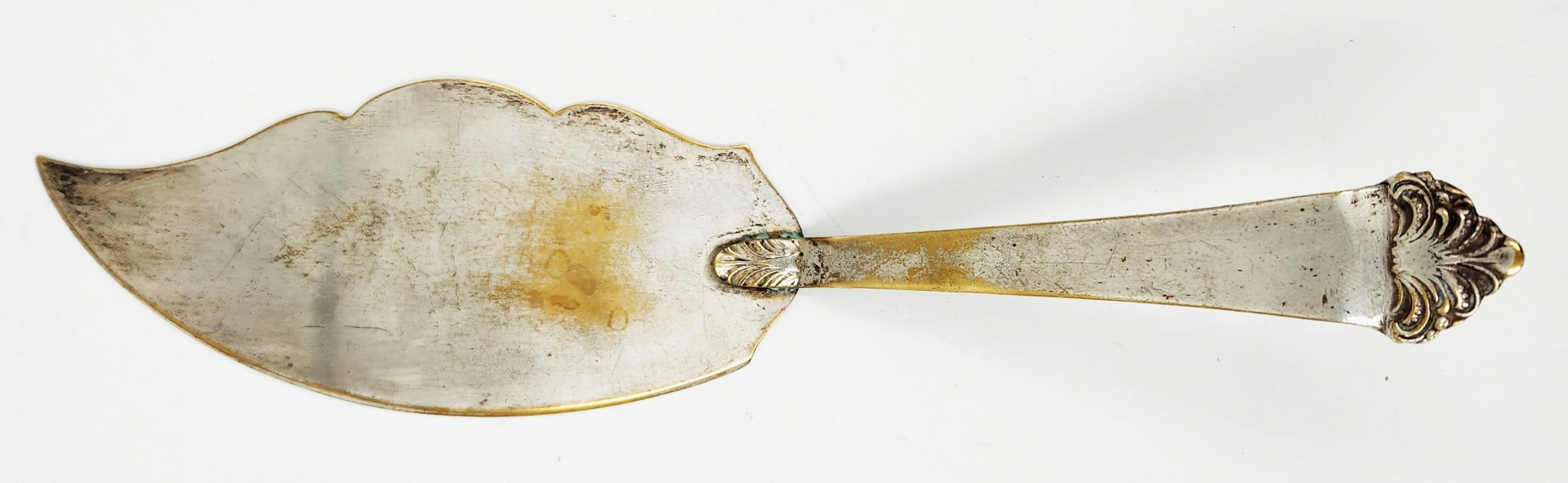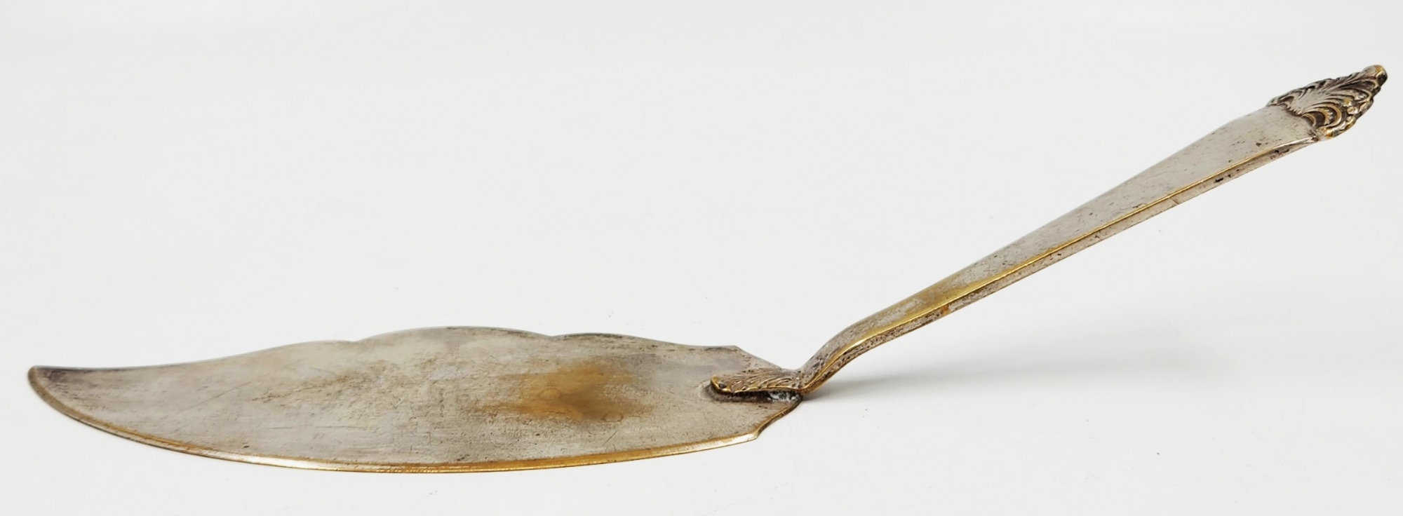 כף ארגנטינאית גדולה להגשת דגים, עשויה פליז מצופה כסף