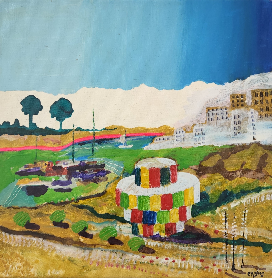 עודד פיינגרש (Oded Feingersh) - 'חוף תל אביב' - שמן על בד, חתום, מידות: 30X30 ס"מ.