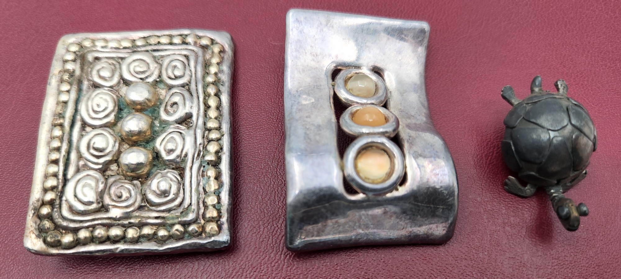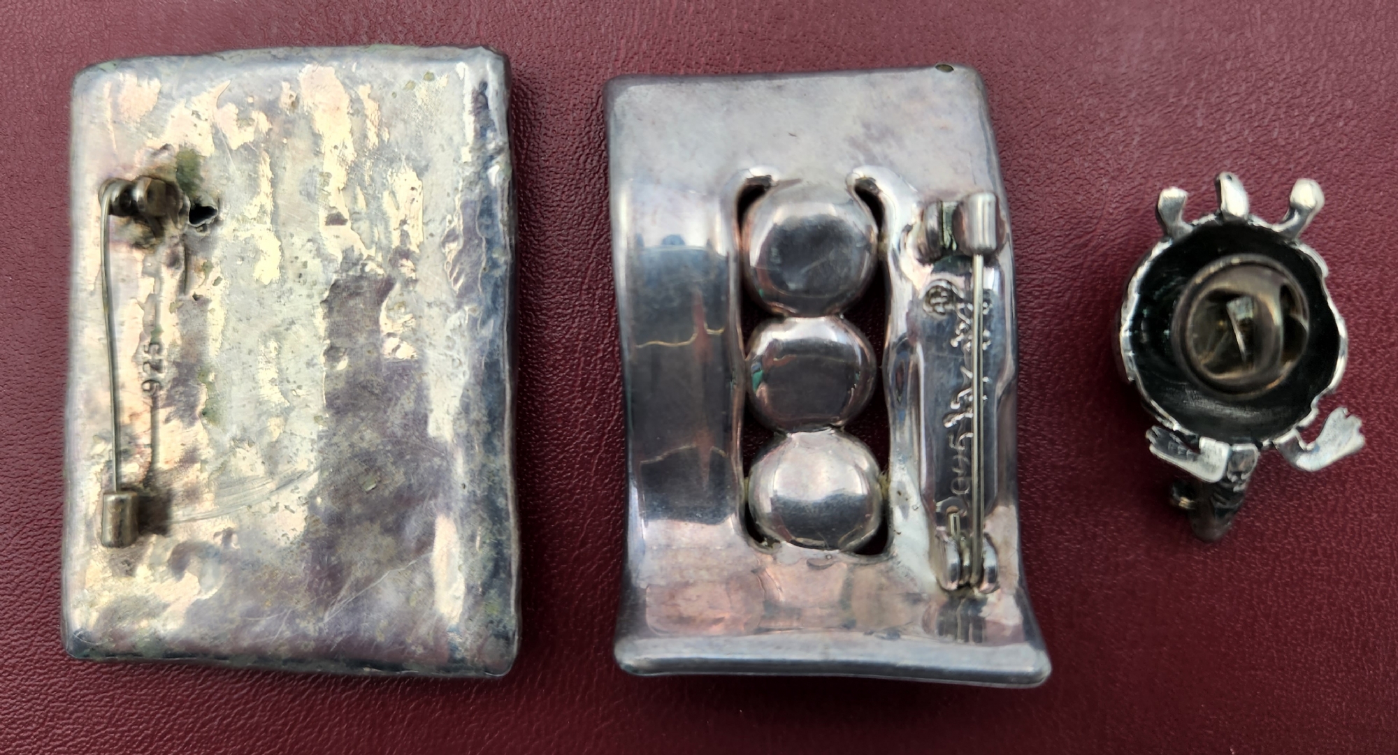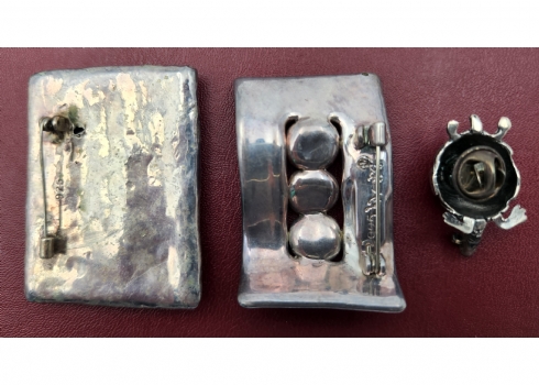 לוט של 3 סיכות ישנות עשויות כסף 'סטרלינג' (925), חתומות, משקל כולל: 31 גרם סה"כ, רוחב בהתאמה: 3.5 ס"מ, 5.5 ס"מ.