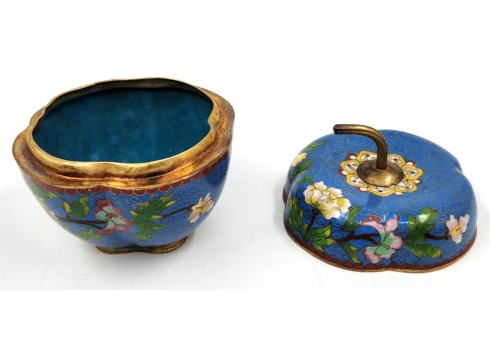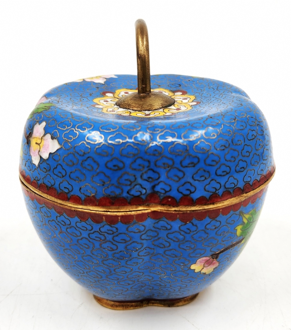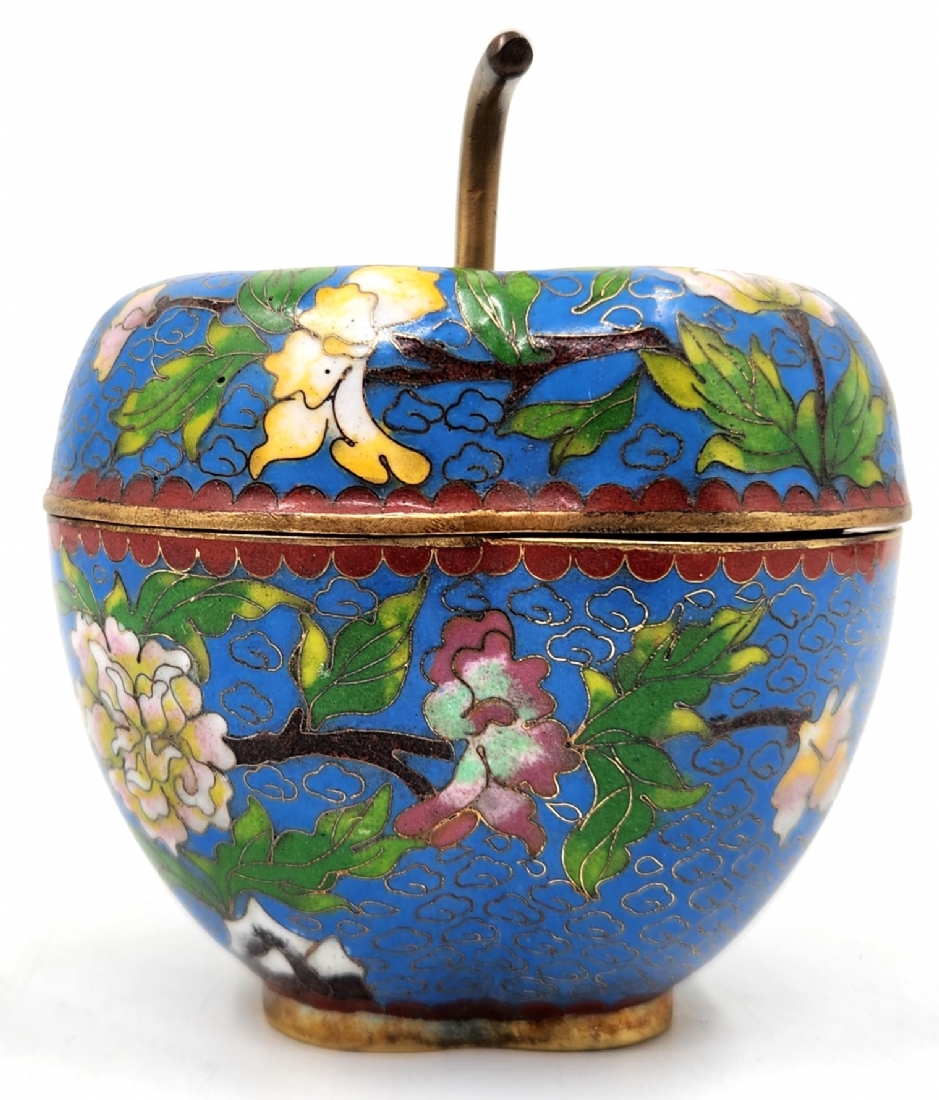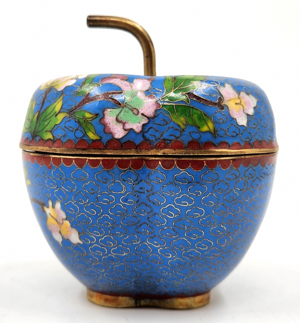 קופסת קלואזונה סינית ישנה ויפה ומכסה תואם, מעוצבת בצורת תפוח עץ