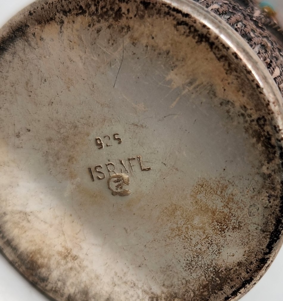קנקן כסף אמריקאי ישן למים קרים מתוצרת: 'POOLE' עשוי כסף 'סטרלינג' (Sterling) כלי אמריקאי עתיק מפואר ומרשים, מתוצרת: 'BARBOUR SILVER CO', עשוי מתכת מצופה כסף אגרטל ישן ואיכותי במיוחד עשוי קריסטל מלוטש ביד ושפה עליונה עשויה כסף כלי עתיק למי ורדים (Rosewater Sprinkler) מהמאה ה-19 כפי הנראה הודי בסגנון מוגולי לוט של 7 מזלגות כסף גרמנים עתיקים, חתומים: '12', משקל כולל: 326 גרם קערת רחצה צרפתית עתיקה וגדולה סט כלי הגשה אנגלי עתיק (ויקטוריאני) מפואר מסוף המאה ה-19 להגשת קפה ותה כד פורצלן ארט נובו מעוטר כסף (Silver Overlay Porcelain) על רקע קובלט כחול כהה דקנטר גרמני ארט נובו עתיק, משנת 1900 בקירוב, מתוצרת: 'WMF' כלי כסף אנגלי, עשוי כסף סטרלינג, מתוצרת: 'Adie Brothers Ltd' בברמינגהם, חתום צלחת כסף פרסית עתיקה ויפה, חתומה לוט פרטי סכו"ם אנגלי ישן מתוצרת: 'Walker & Hall', עשויים מתכת מצופה כסף, חתומים כלי אנגלי ישן לרוטב (רוטביה), מתוצרת: 'Walker & Hall', עשוי מתכת מצופה כסף, חתום כלי הגשה ומכסה תואם, עשויים מתכת מצופים כסף, חתום כלי הגשה וכיבוד מרובע, עשוי מתכת מצופה כסף, חתום מיחם (סמובר) אמריקאי ישן ואיכותי מתוצרת 'Reed & Barton', חתום, עשוי מתכת מוכספת קופסא עתיקה מסוף המאה ה-19, עשויה מתכת  ומשובצת אבני חן טבעיות מגש ישן ויפה בסגנון עתיק, עשוי מתכת מצופה כסף, חתום, נתמך על ארבע רגליות כד רוסי עתיק, מתחילת המאה העשרים, עשוי גוף קריסטל מלוטש בעבודת יד מיחם אנגלי עתיק (ויקטוריאני) מסוף המאה ה-19, עשוי פיוטר מצופה כסף סט של שלושה כלי כסף הודים (קשמיריים) עתיקים מהמאה ה-19 סט אנגלי עתיק (ויקטוריאני) להגשת דגים כלי מוכסף להגשה וכיבוד קנקן ארט דקו ישן לשתייה קרה קנקן מתוצרת: 'Mappin & Webb' שני כלי כסף עתיקים כף הגשה אוסטרית עתיקה כלי הגשה ישן, עשוי נחושת מצופה כסף כלי מוכסף ומעמד תואם סלסלה עתיקה עשויה פליז מצופה כסף