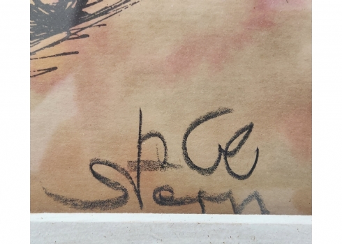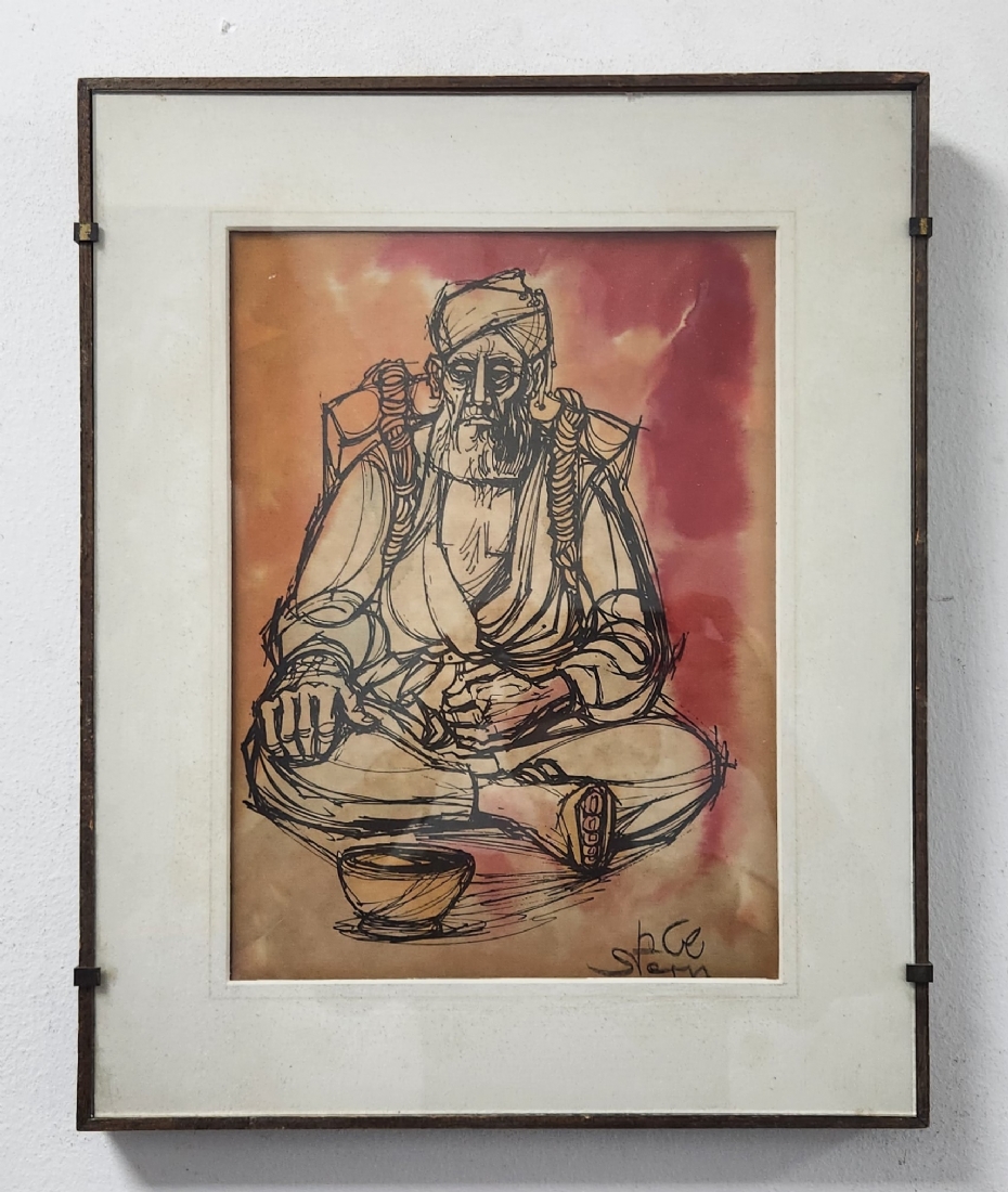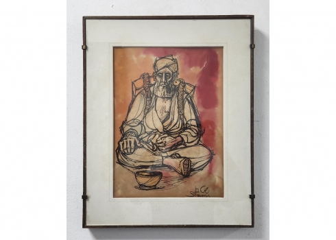 יוסי שטרן (Joseph Stern) - 'קבצן' - הדפס צבוע ביד באקוורל, חתום בעיפרון, מידות: 32X23 ס"מ, מידות המסגרת: 44X35.5 ס"מ.