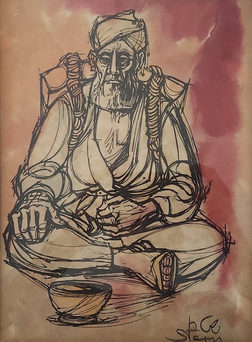 יוסי שטרן (Joseph Stern) - 'קבצן' - הדפס צבוע ביד באקוורל, חתום בעיפרון