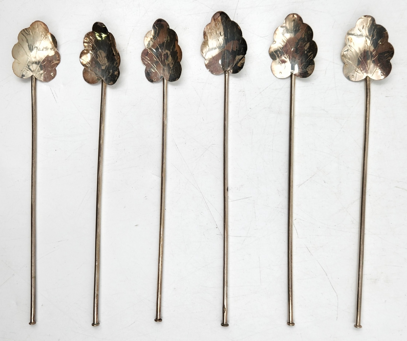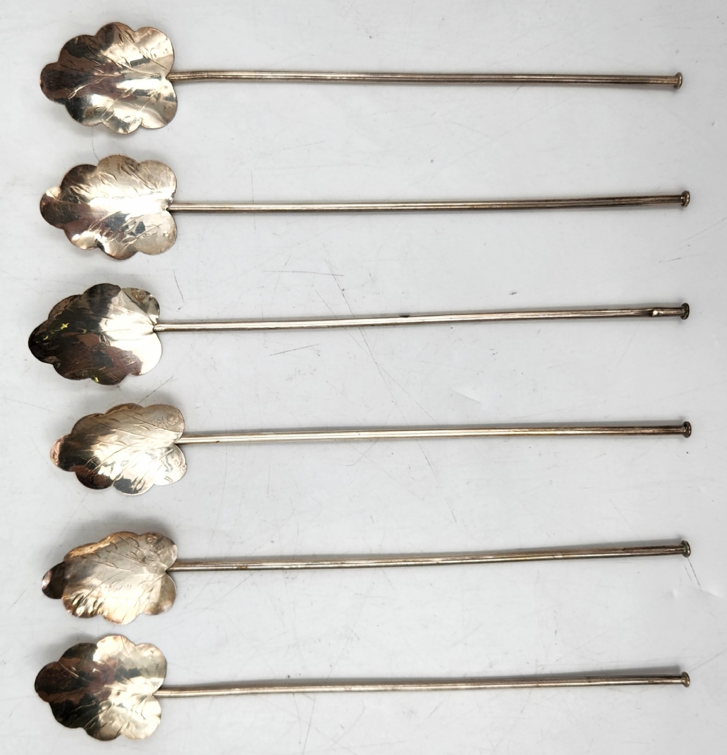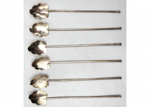 סט של 6 קשים לשתיה קרה עשויים כסף 'סטרלינג' (חתומים), משקל כולל: 23 גרם, אורך: 19.5 ס"מ.