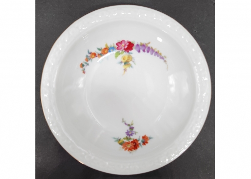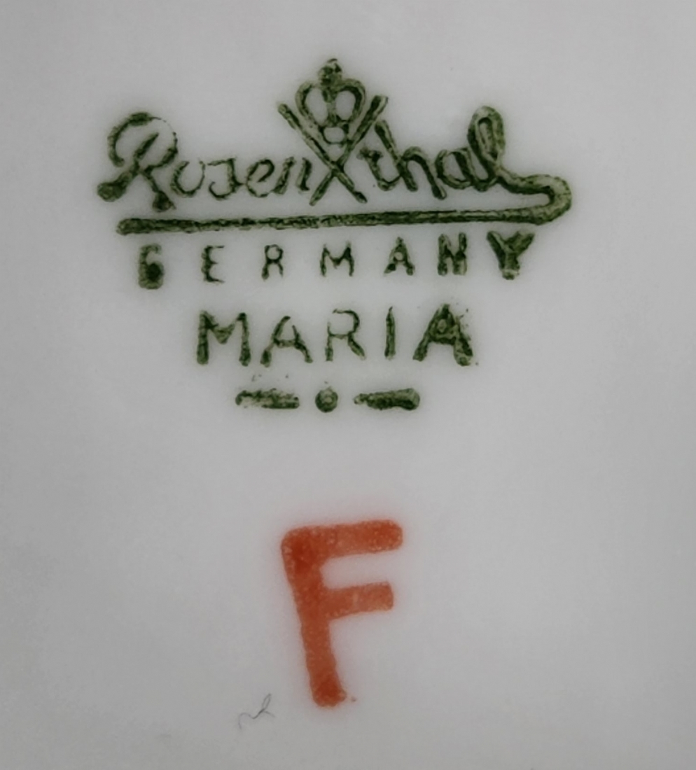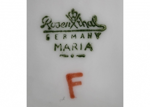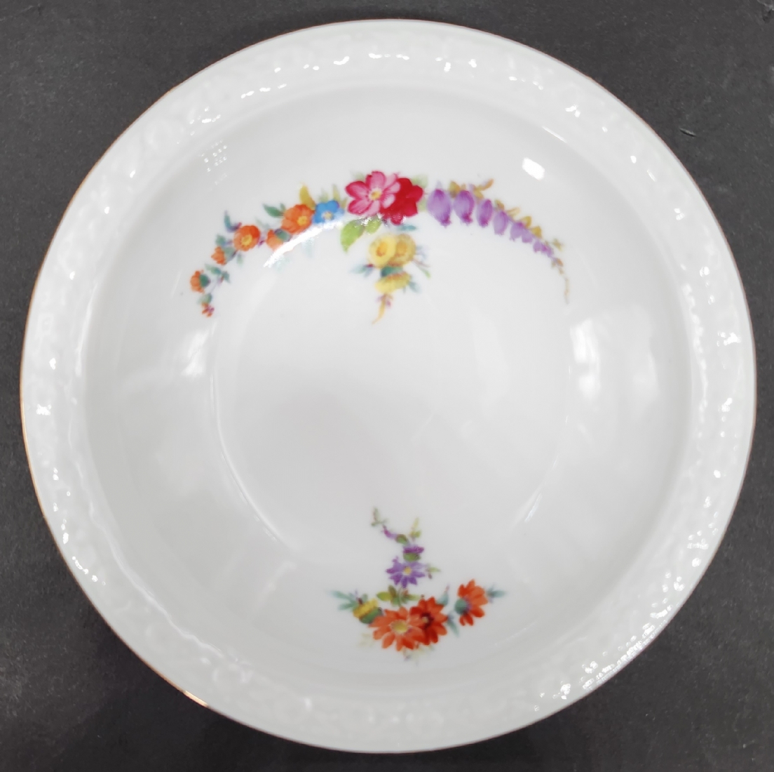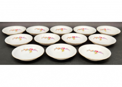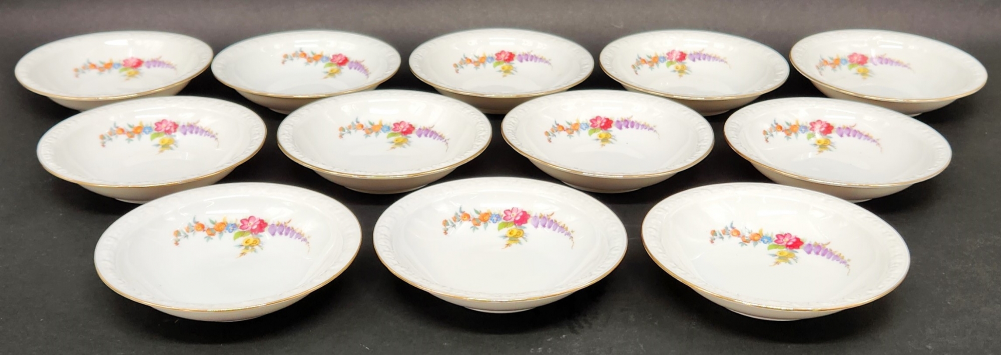 סט של 12 קעריות פורצלן גרמניות עתיקות ללפתן (אישיות) מתוצרת 'רוזנטל' (Rosenthal), דגם מריה, מעוטרות בהדפס פרחוני וחתומות, קוטר: 13.5 ס"מ.