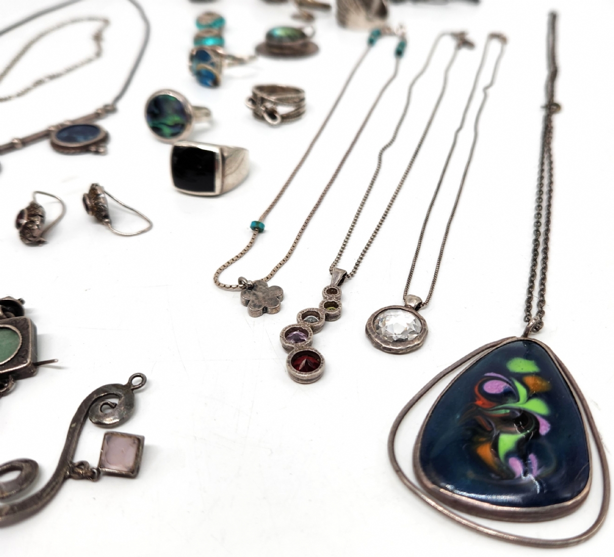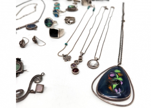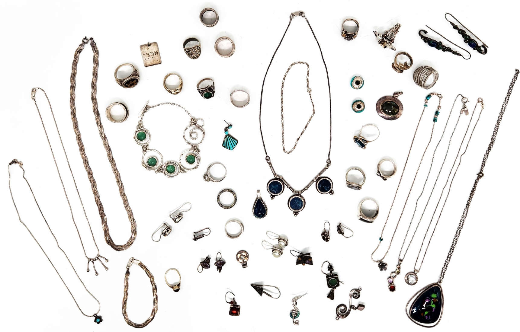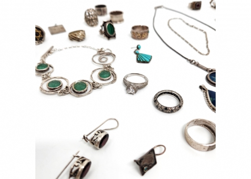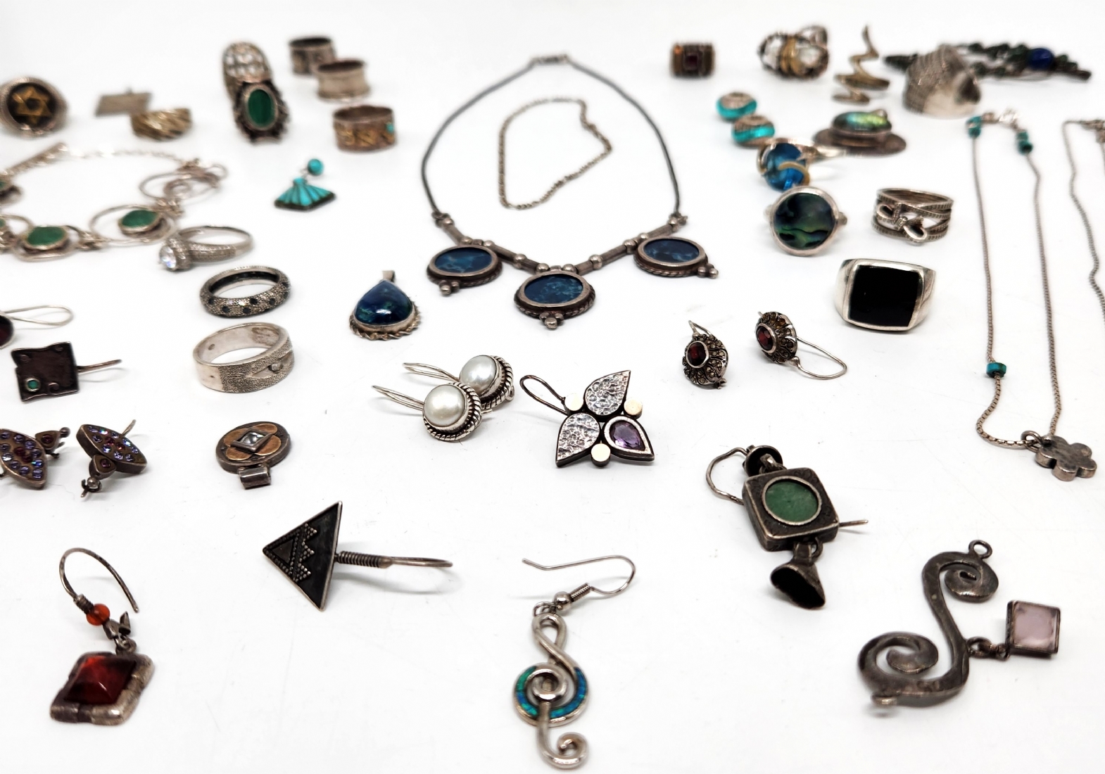 לוט סוחרים גדול ומגוון של 54 תכשיטי כסף ישנים שונים (יצרנים ודגמים שונים)