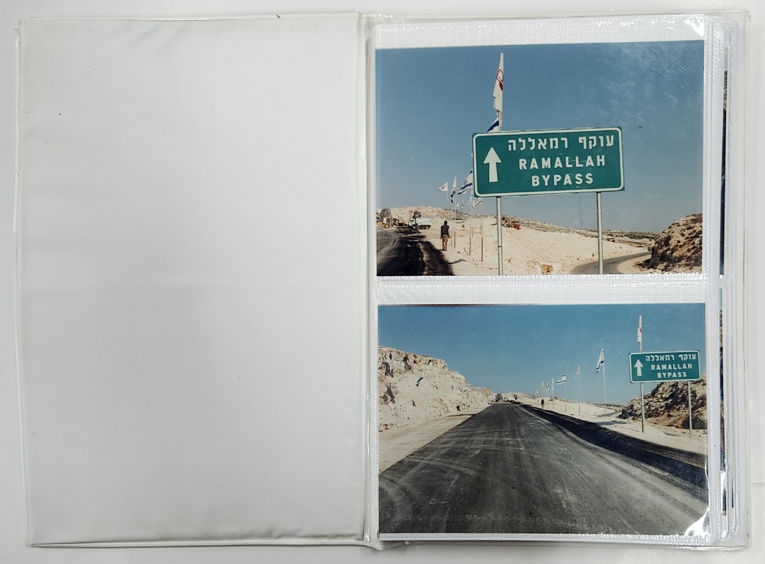 אלבום ובו 96 צילומים של פואד בן אליעזר (שם האלבום: עוקף רמאללה), מידות כל צילום: 13X18 ס"מ.