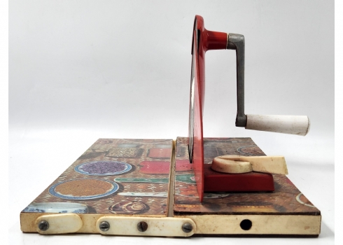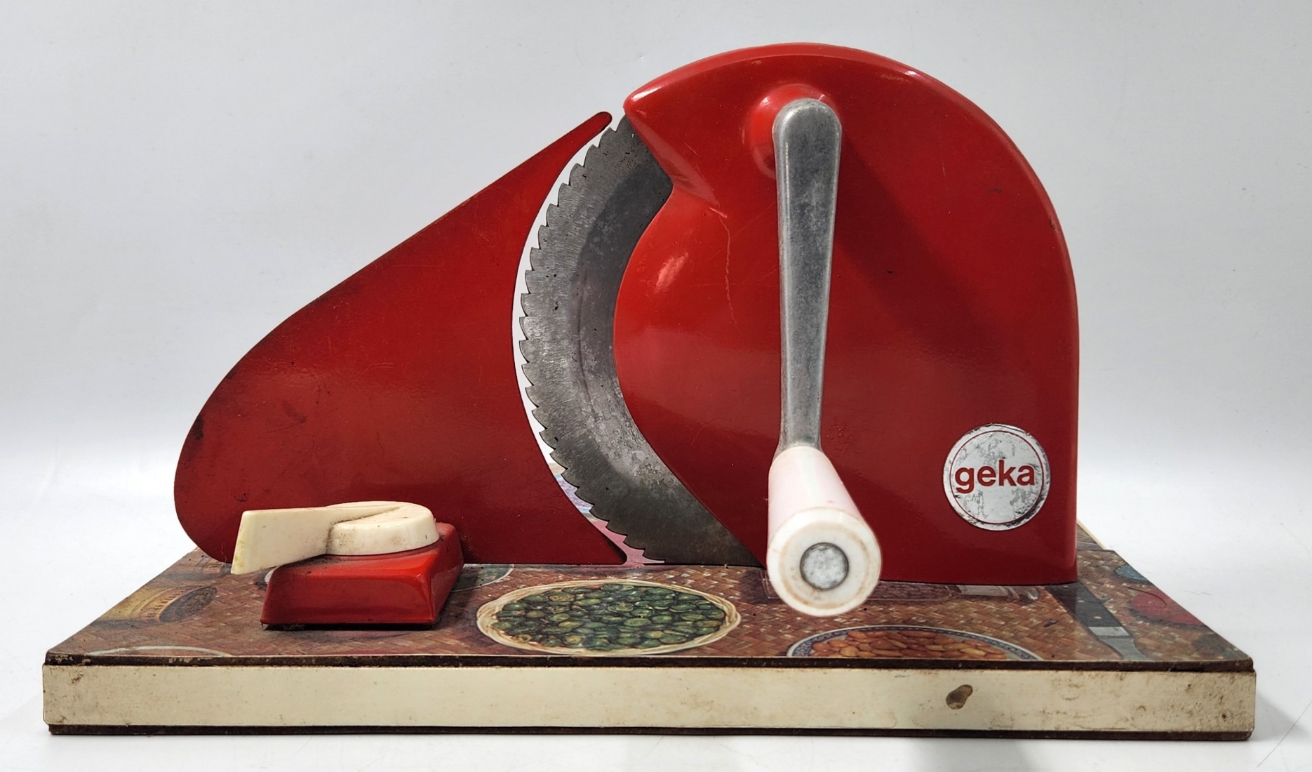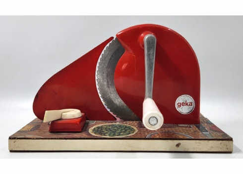 לחובבי וינטג' וכלי מטבח ישנים - פורס לחם ידני, תוצרת 'geka', מצב בהתאם לגיל, אורך: 30 ס"מ, רוחב 22.5 ס"מ, גובה: 20 ס"מ