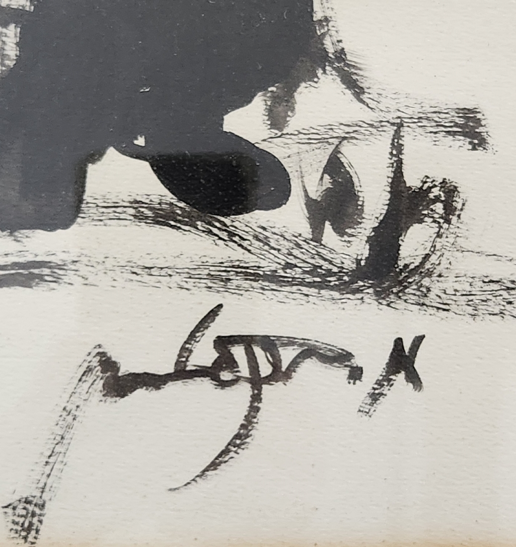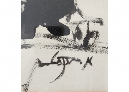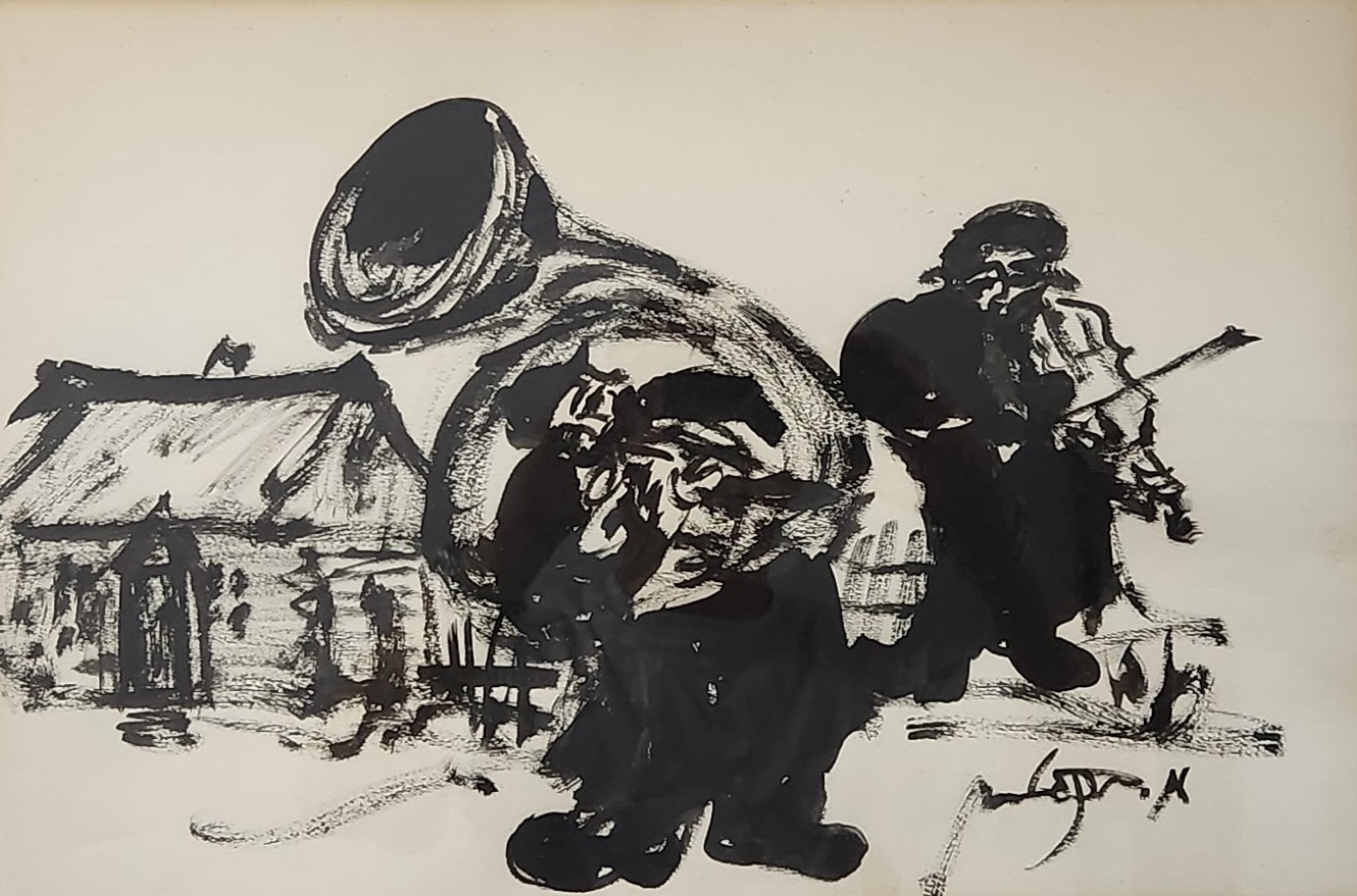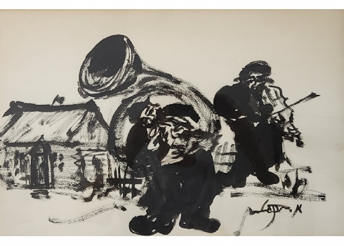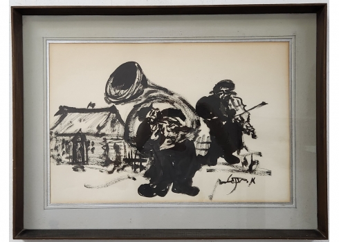 משה ברנשטיין (Moshe Bernstein) - 'כלייזמר תוקע בקרן יער' - גואש שחור על נייר, חת