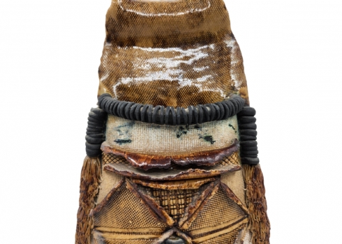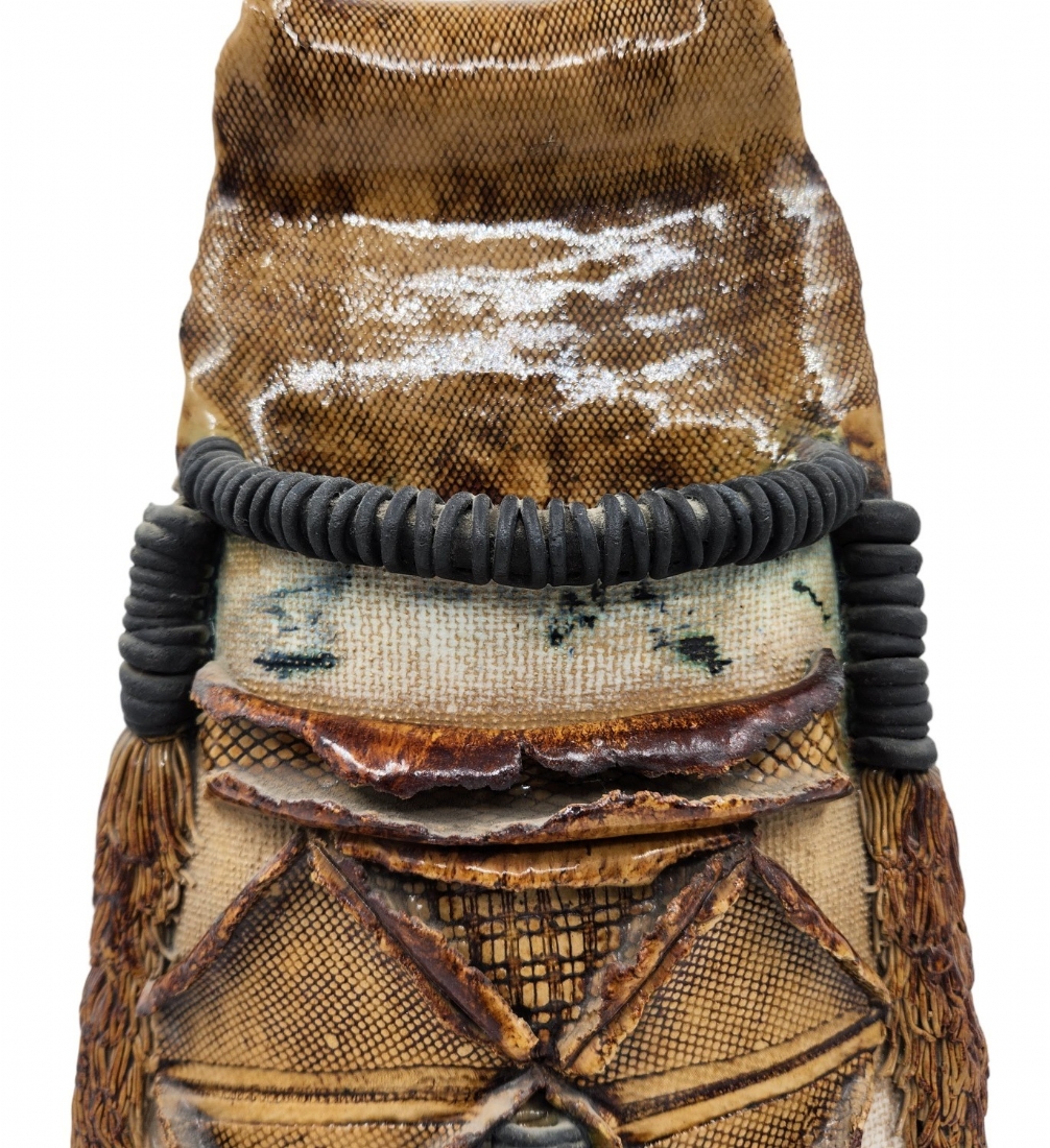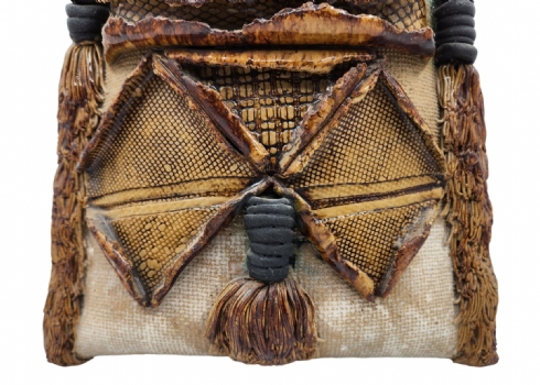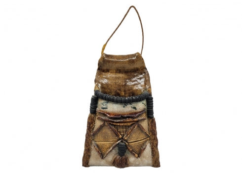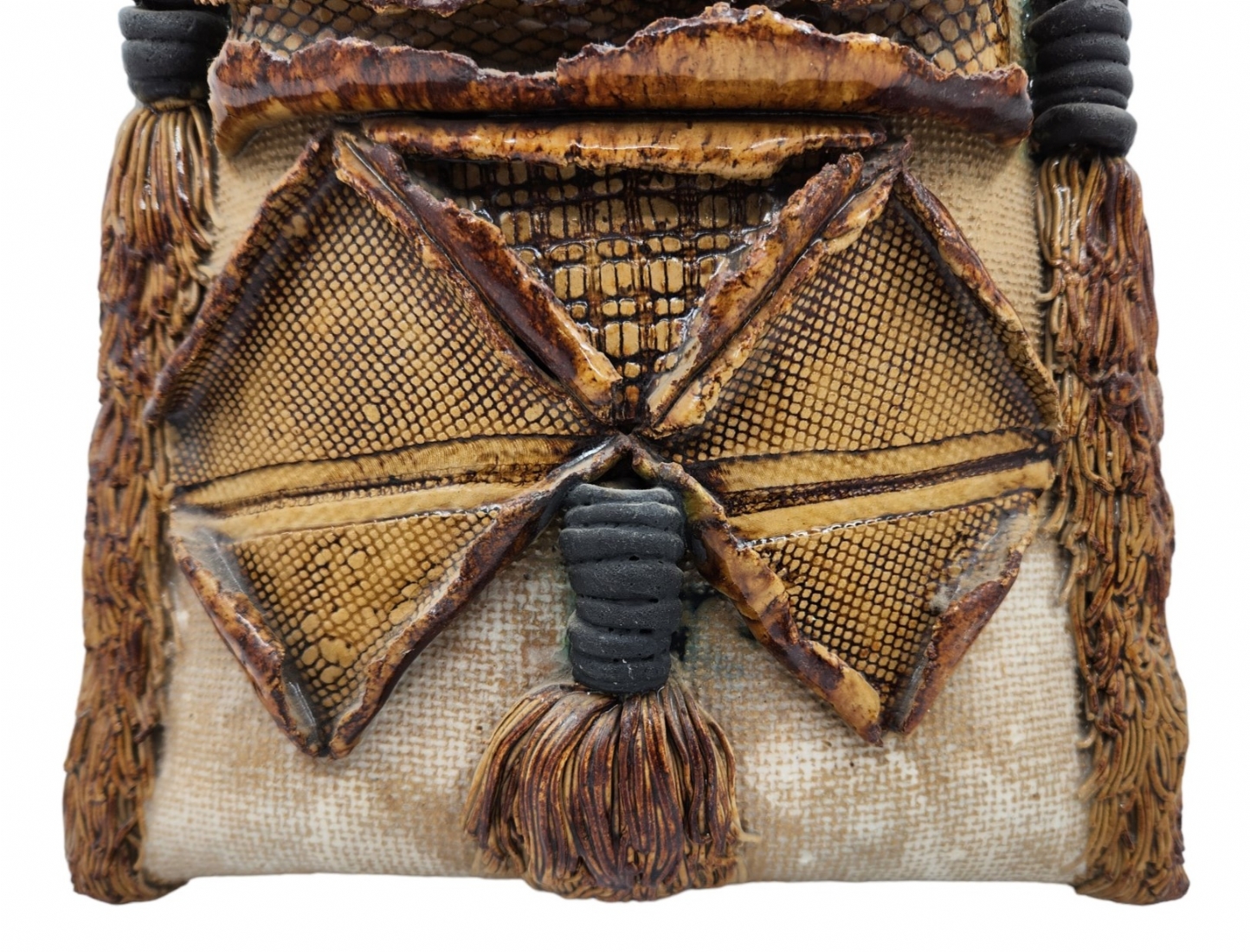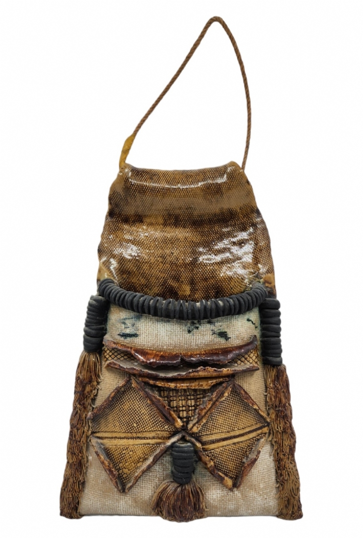 לאספני קרמיקת סטודיו - כיס קיר גדול עשוי קרמיקה בעבודת יד, חתום, רוחב: 32 ס"מ, גובה לא כולל חבל התליה: 46 ס"מ.