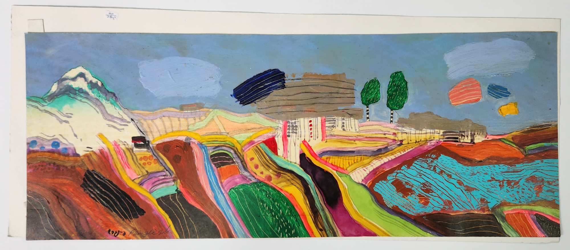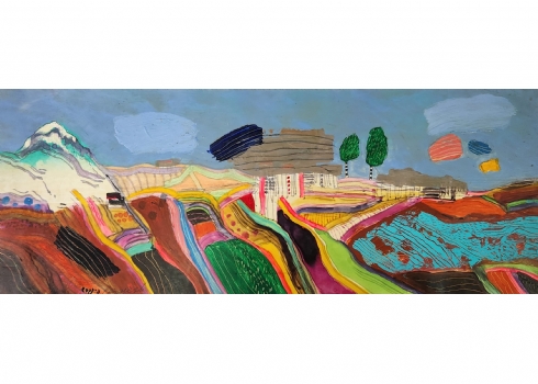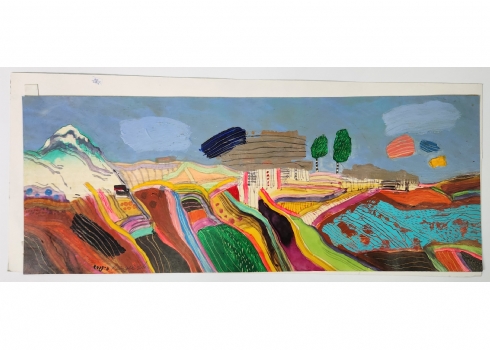 עודד פיינגרש (Oded Feingersh) - 'שני עצים ופסגת הר מושלגת' - שמן על נייר, חתום