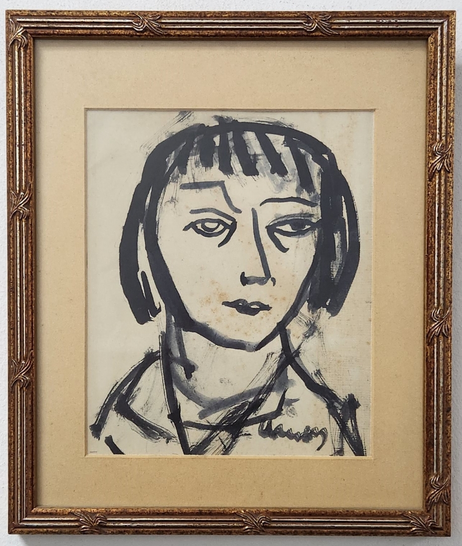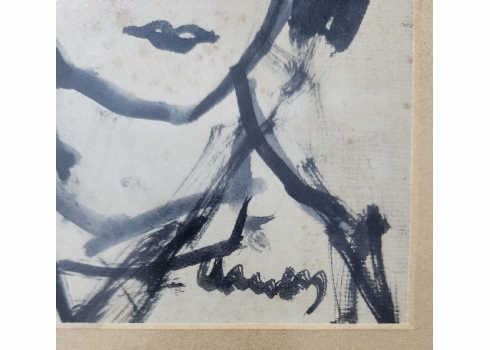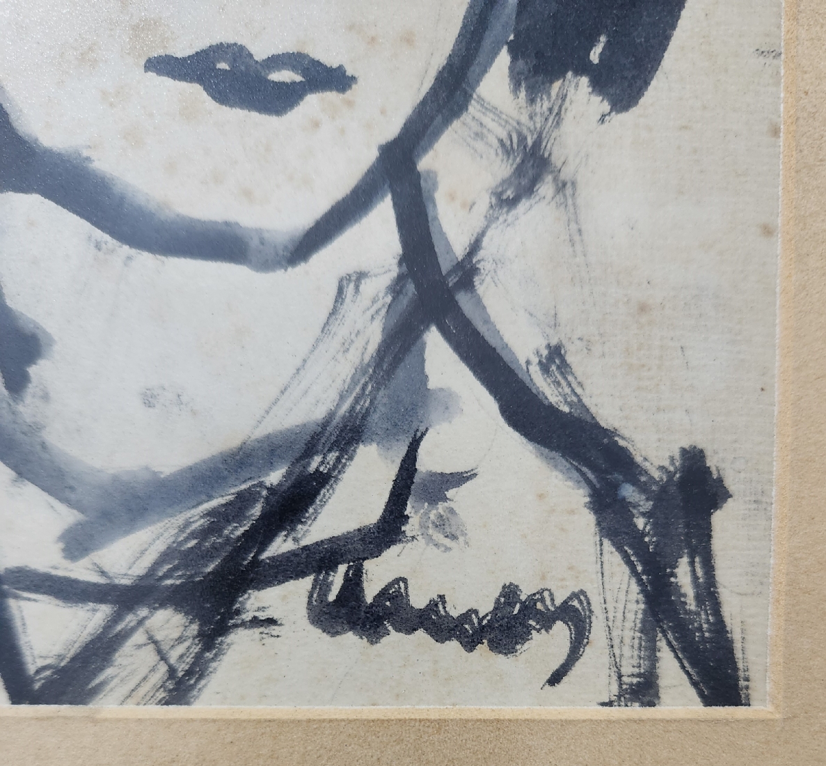 'עין אחת עצלה והשנייה רואה שקרים וכזבות' - ציור ישן, אקוורל שחור על נייר, חתום, אמן לא מזוהה (נשמח לעזרה בזיהוי האמן), מידות: 18X15 ס"מ, מידות המסגרת: 27X23 ס"מ.