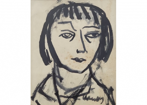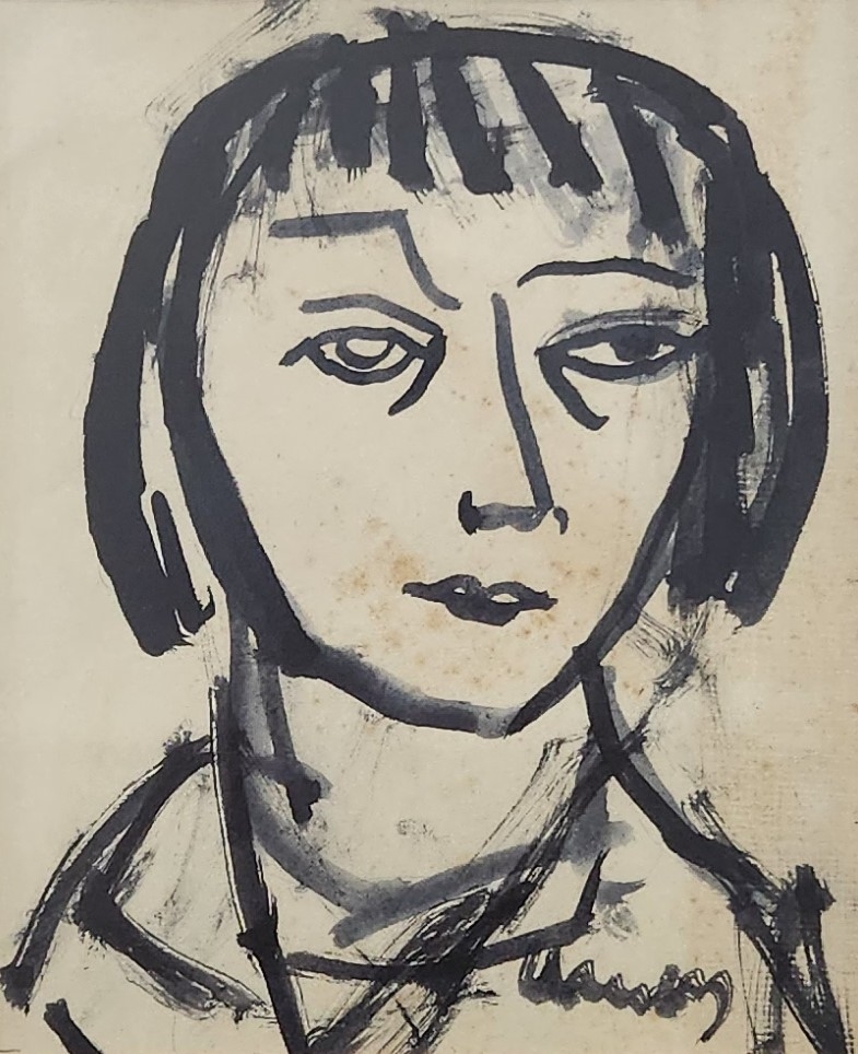 'עין אחת עצלה והשנייה רואה שקרים וכזבות' - ציור ישן, אקוורל שחור על נייר, חתום