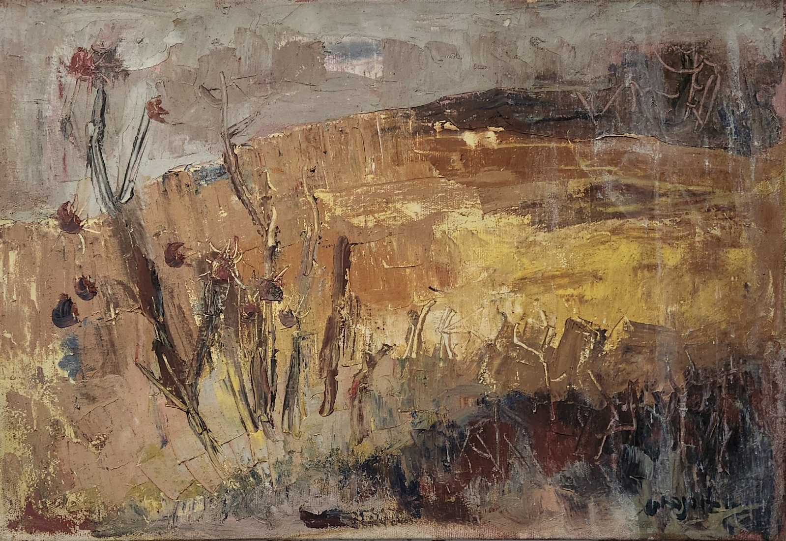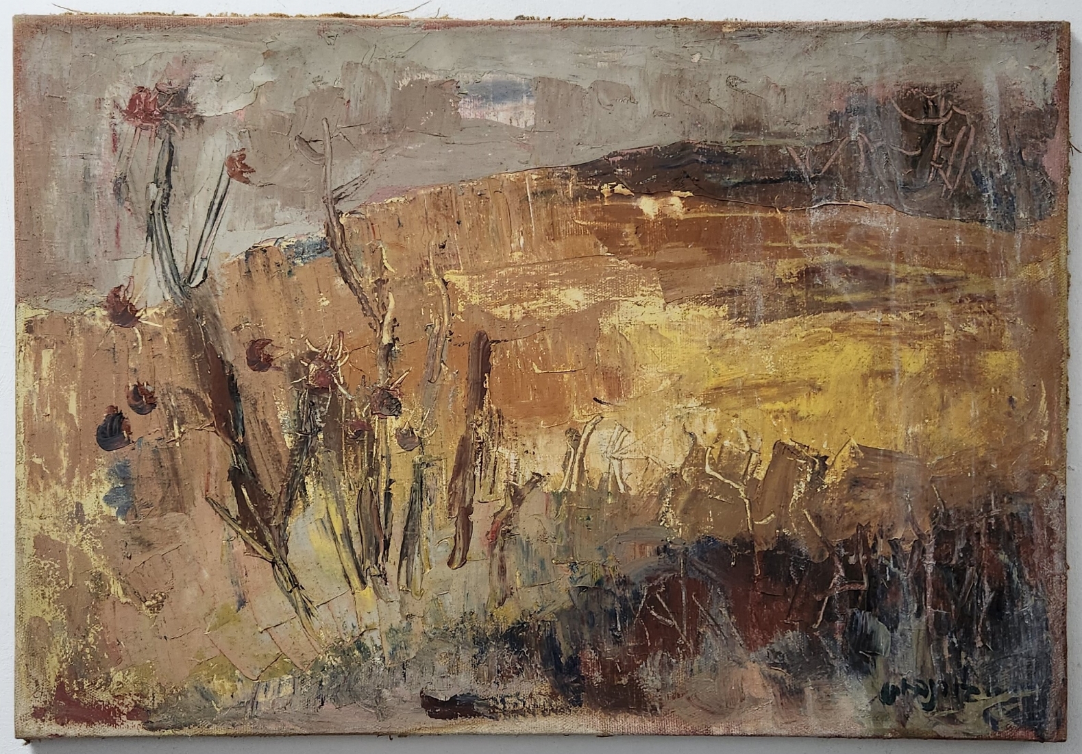 יהושע בורנפרוינד (Bornfroind Yehushua) - 'דרדרים', ציור ישן, שמן על בד, ללא מסגרת, חתום, מידות: 50X74 ס"מ.