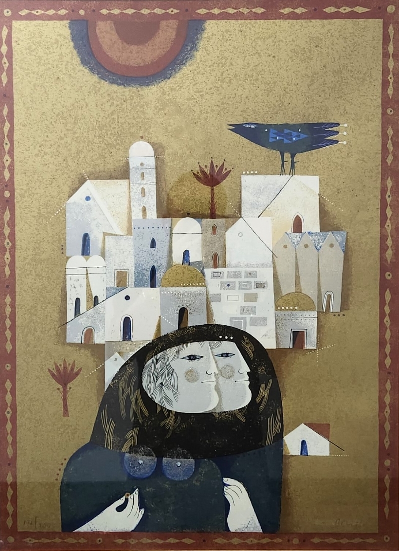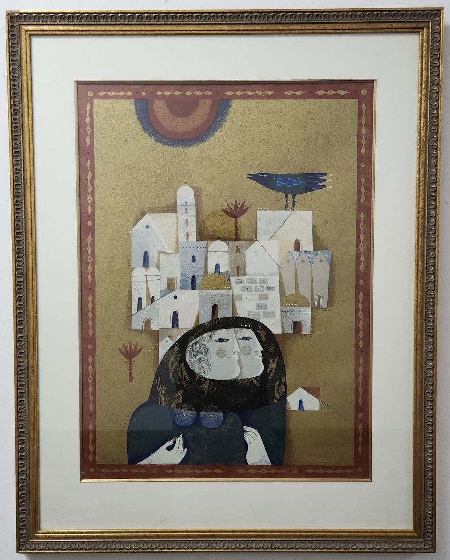 סמי בריס (Sami Briss) - 'נשות ירושלים', ליטוגרפיה ישנה נתונה במסגרת יפה, חתומה בעיפרון וממוספרת 172/200 (פגם למסגרת - מצולם), מידות: 66.5X49 ס"מ, מידות המסגרת: 90.5X71 ס"מ.
