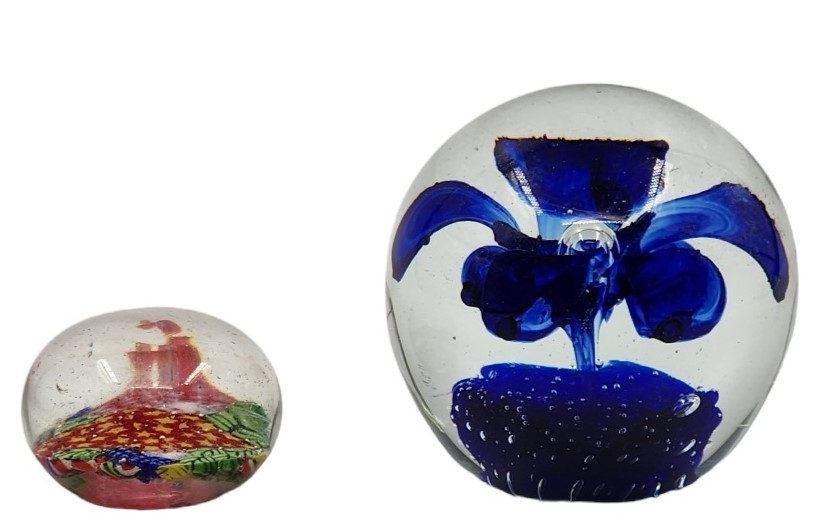 לאספני משקולות נייר - לוט של 2 משקולות נייר יפות, לא חתומות, קוטר הגדולה: 8 ס"מ, קוטר הקטנה: 6 ס"מ.