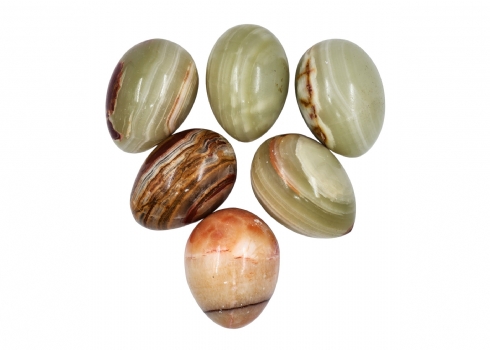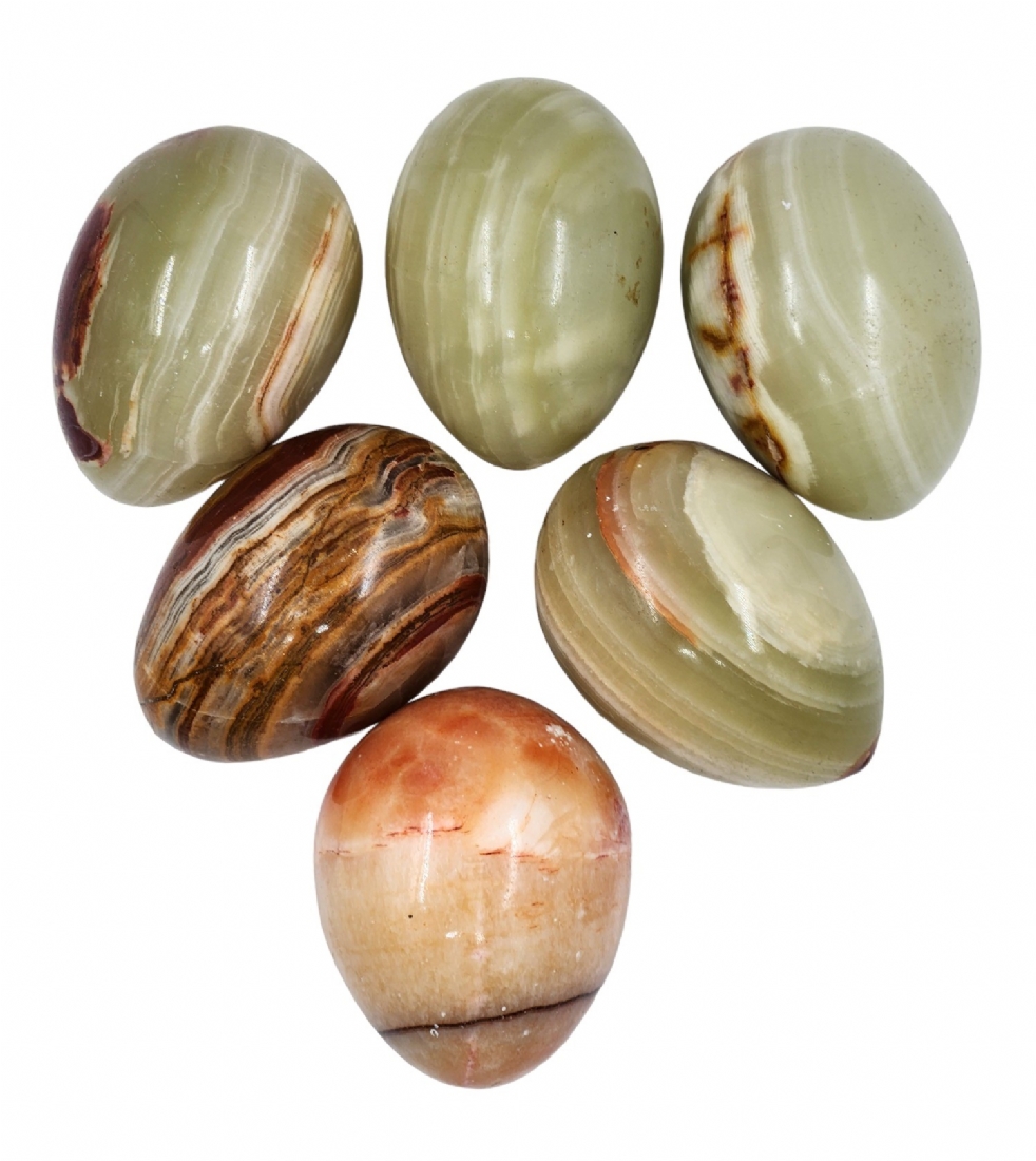 לוט של 6 ביצים עשויות סוגי שיש ואבן טבעית שונים, אורך:7 ס"מ