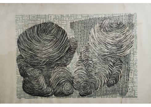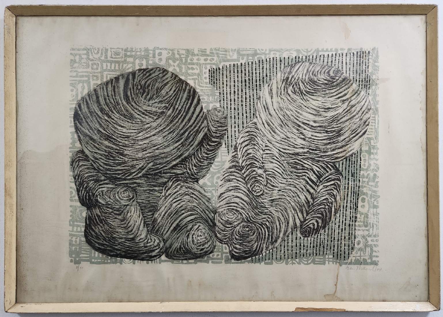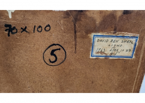בן שאול, דוד (דדי) - David Ben-Shaul - ליטוגרפיה ישנה מ 1963, חתומה בעיפרון וממוספרת 8/10 (כתמים, פגמים למסגרת), מידות: 69X99.5 ס"מ, מידות המסגרת: 72.5X103 ס"מ.