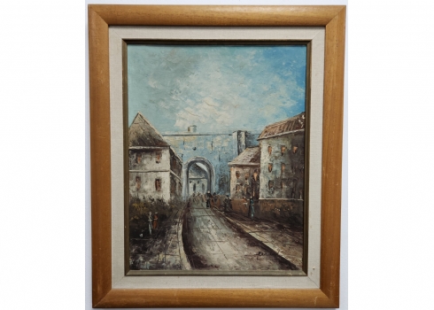 'סמטה בפרברי פריז' - ציור ישן, שמן על לוח, חתום, מידות: 41X32 ס"מ, מידות המסגרת: 54X45 ס"מ.