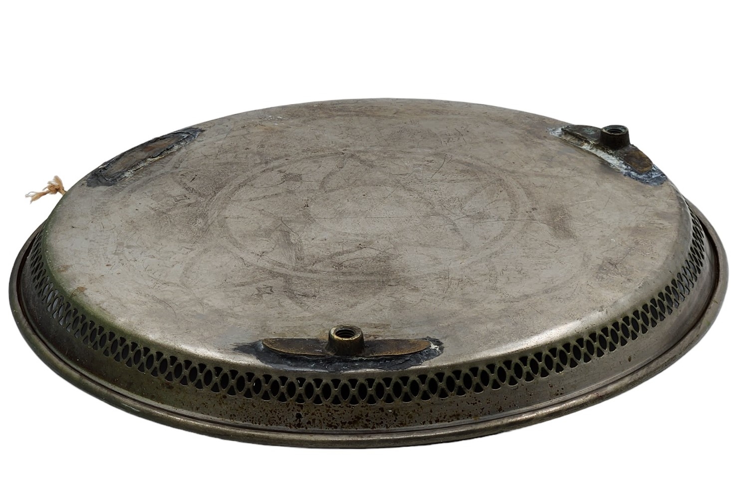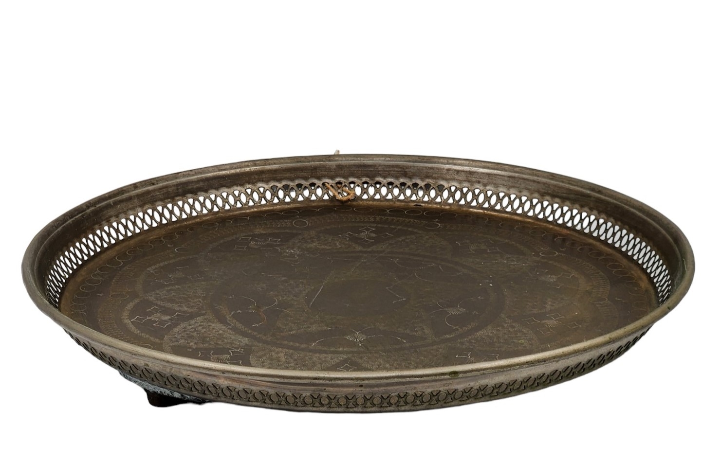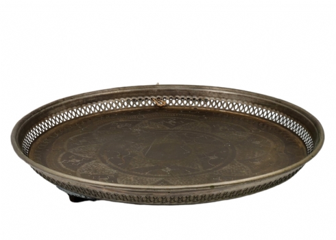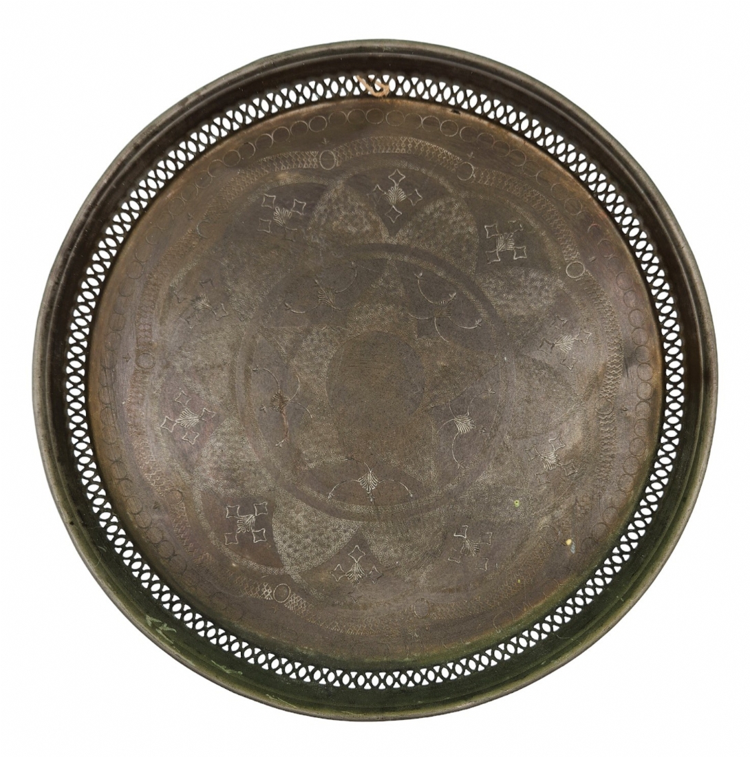 מגש מרוקאי עגול וגדול, עשוי נחושת, מעוטר