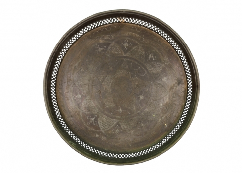 מגש מרוקאי עגול וגדול, עשוי נחושת, מעוטר, קוטר: 49 ס"מ.