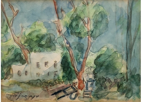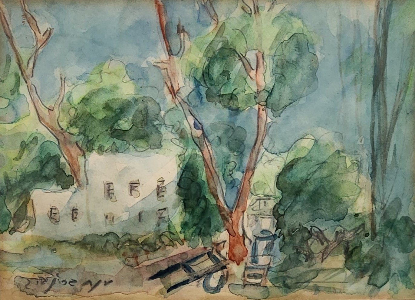 ענת גרינברג (Anat greenberg) - 'מריצה כחולה' - אקוורל על נייר, חתום