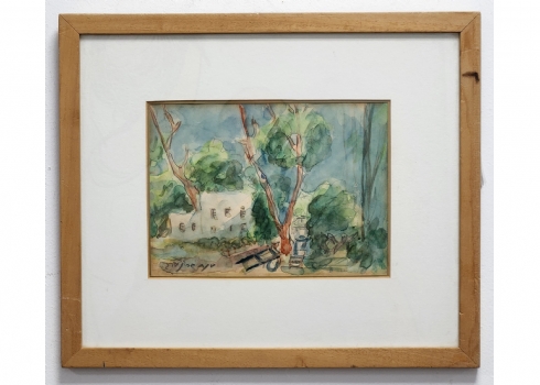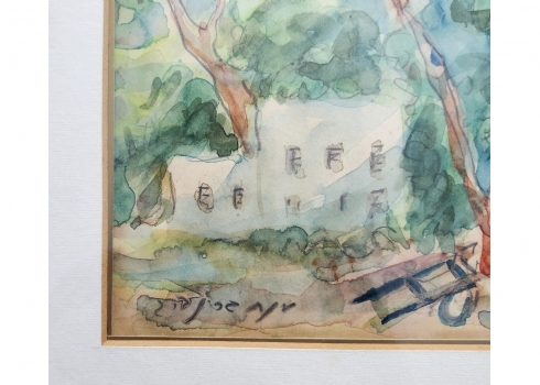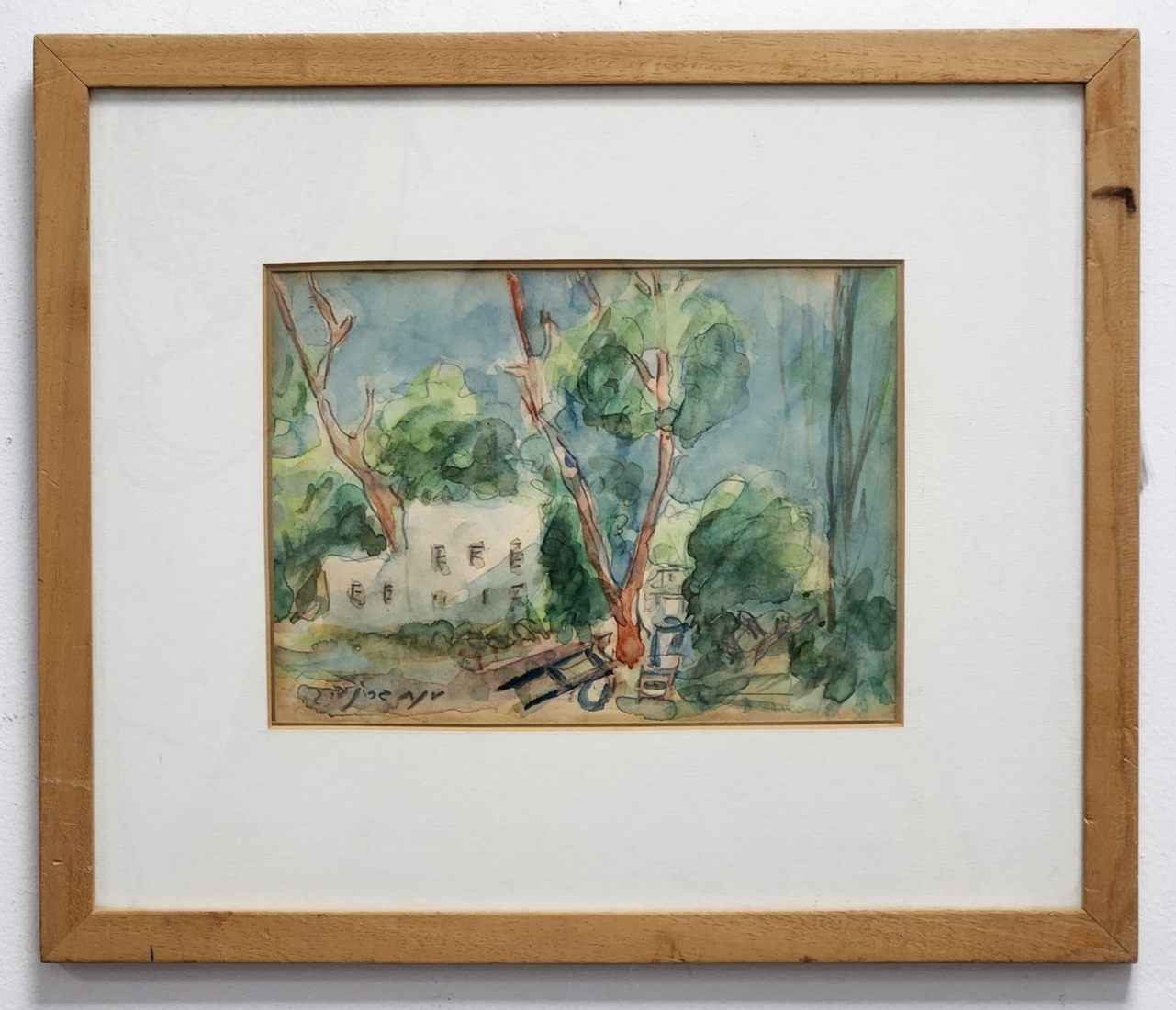 ענת גרינברג (Anat greenberg) - 'מריצה כחולה' - אקוורל על נייר, חתום, מידות: 17X24 ס"מ, מידות המסגרת: 35X41 ס"מ.