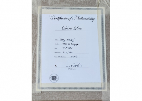 דורית לוי (Dorit Levi) - 'Big Easy' - אקריליק על סריגרף, חתום, ממוספר: 272/750, מידות: 68X94 ס"מ, מידות המסגרת: 86X112 ס"מ.