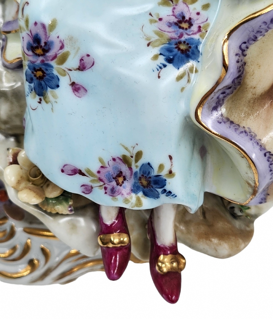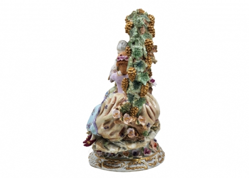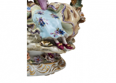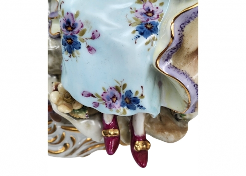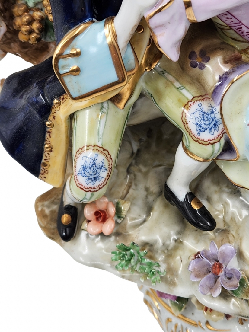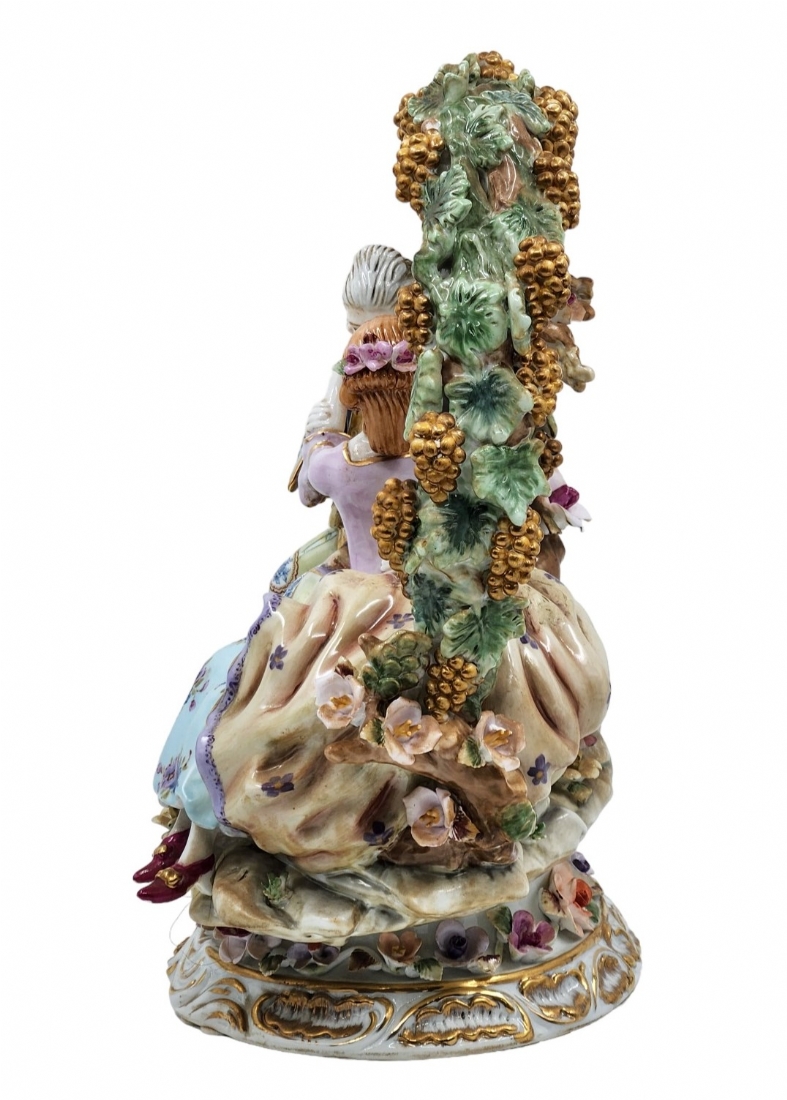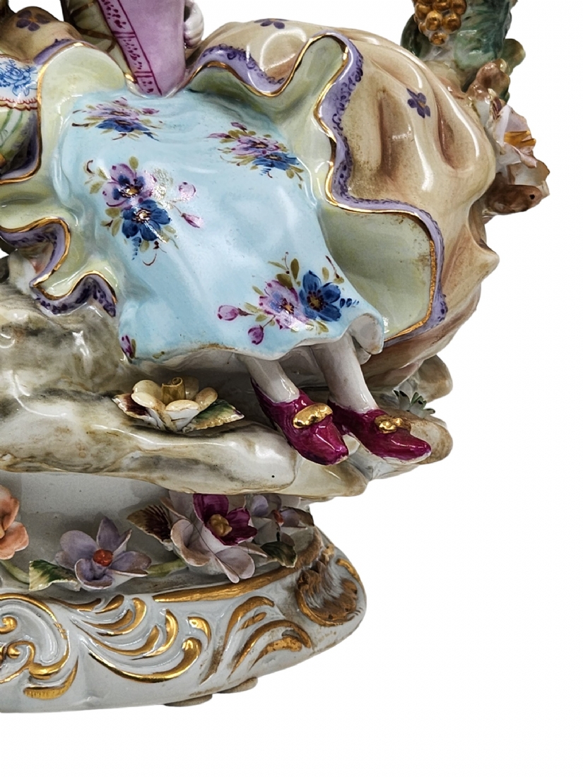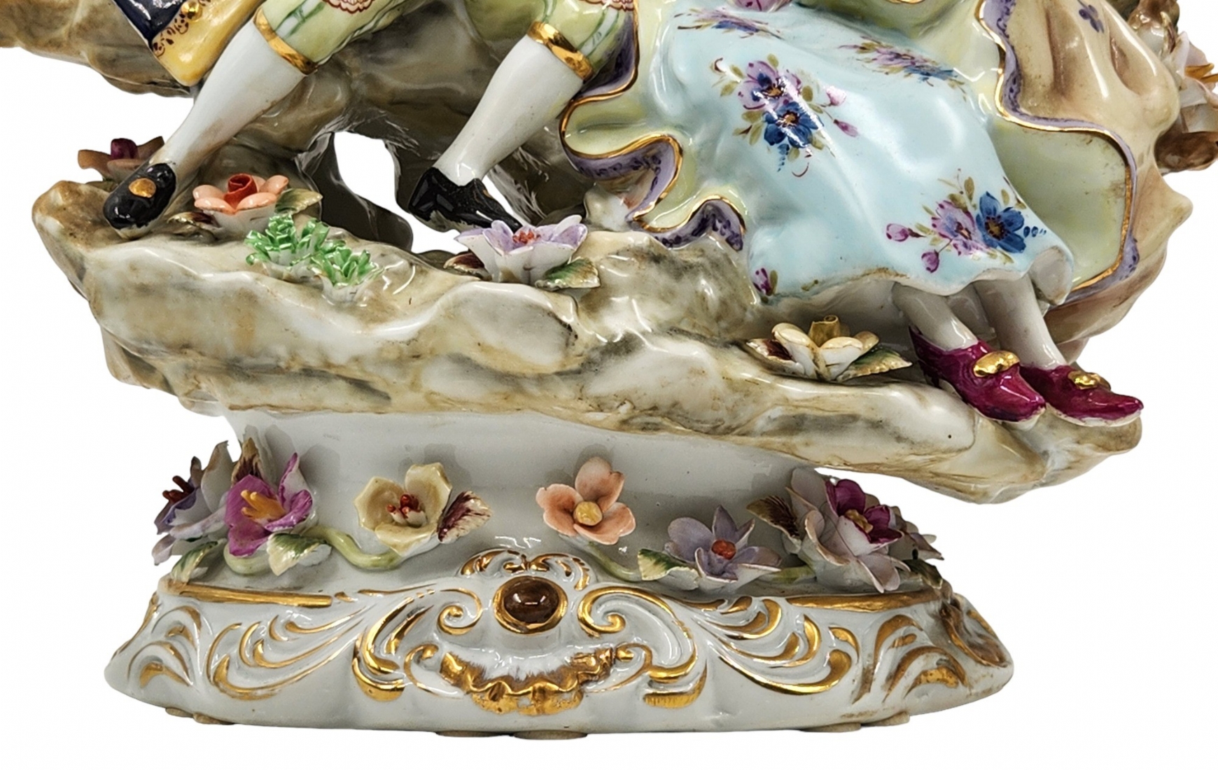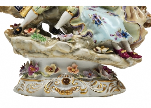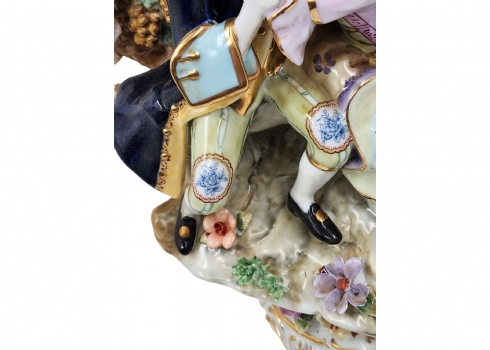 "תנשק אותי כבר קיבינימט" - קבוצה פיסולית גדולה עשויה חרסינה, מעוטרת בצביעת יד באמייל ובזהב, חתומה, רוחב: 30 ס"מ, גובה: 38 ס"מ.